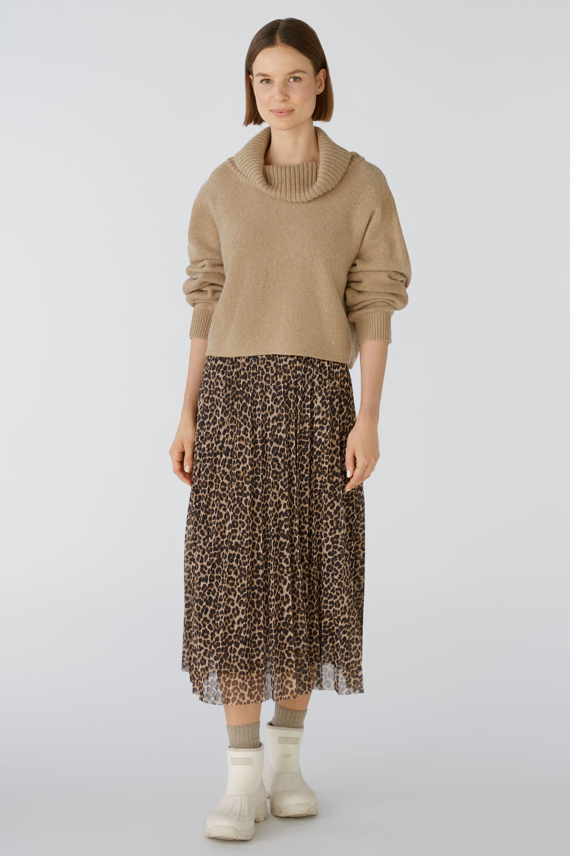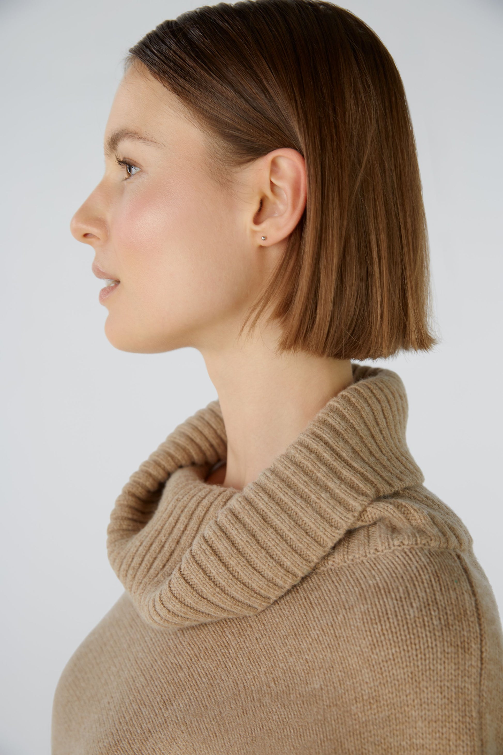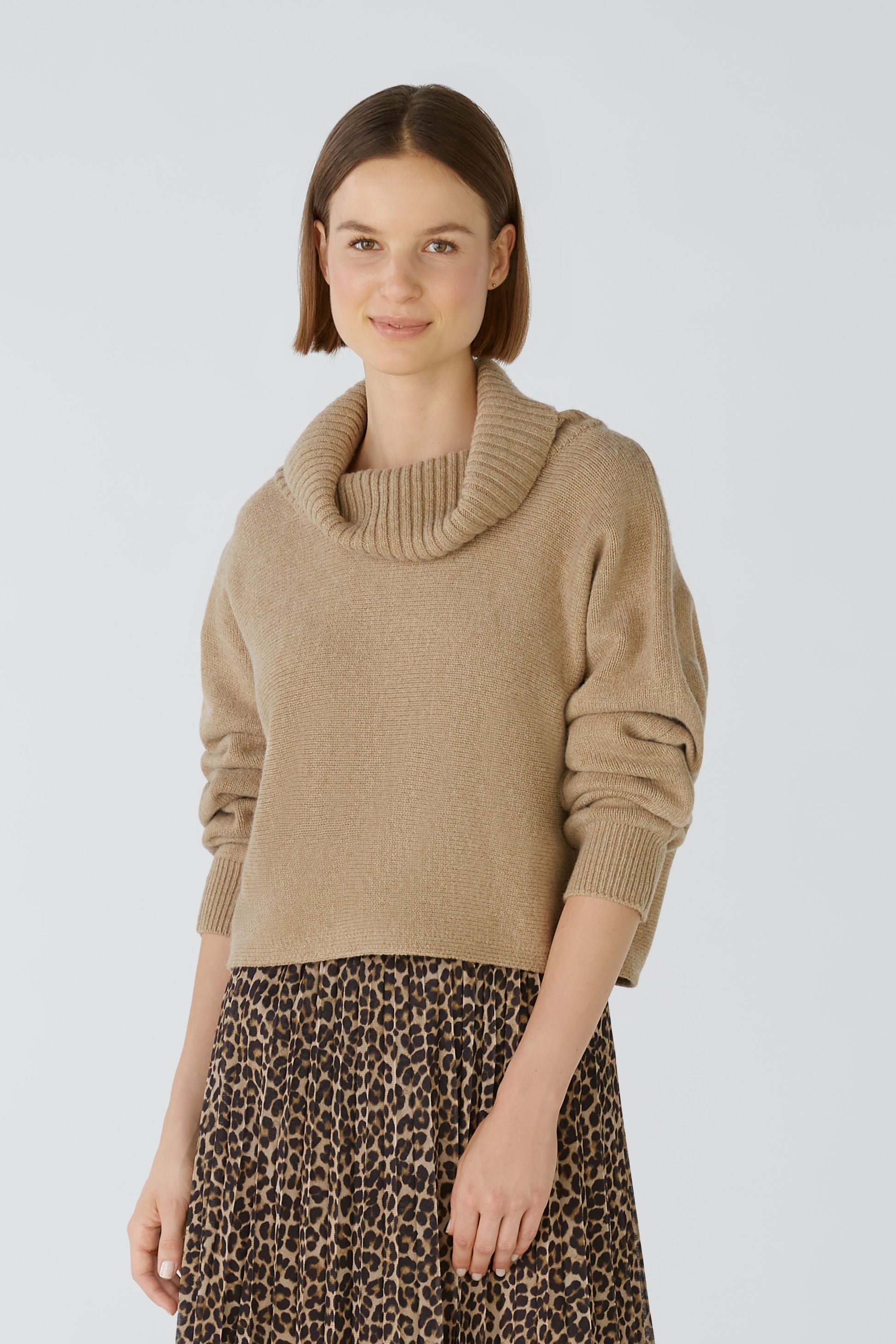 Hoher, weiter Rollkragen, in Rippe gestrickt