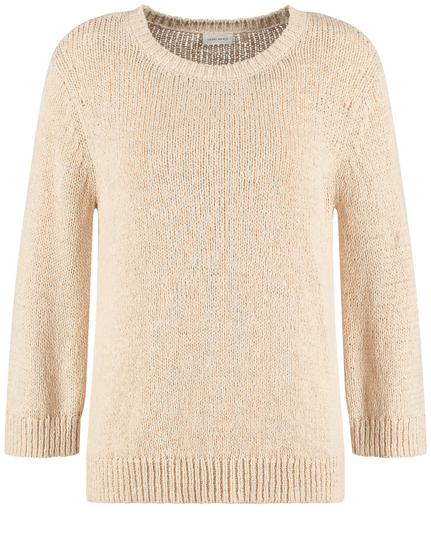 Ausschnittblende und Saumabschlüsse in Rippstrick. Komfort trifft auf Stil: Dieser bequeme 3/4-Arm-Pullover aus softem Material-Mix verwöhnt mit angenehmem Tragegefühl. Eine breite Ausschnittblende und Saumabschlüsse in Rippstrick setzen modische Akzente und verleihen dem Design eine lässige Note. Der ideale Begleiter für entspannte Outfits mit einer Extraportion Wohlfühlfaktor. Perfekt für jede Gelegenheit!