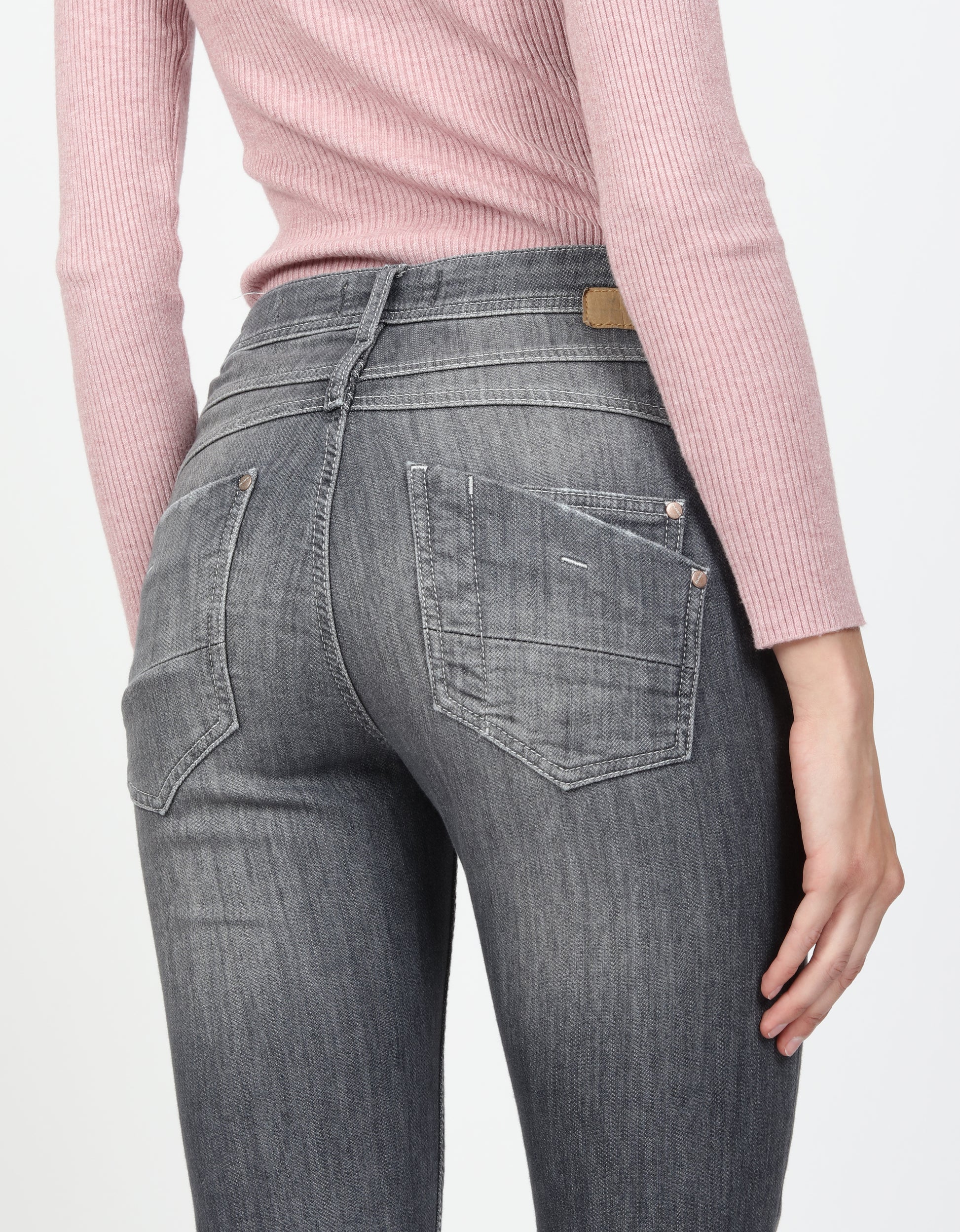 Unsere 94AMELIE �berzeugt im relaxten 5-Pocket Style mit mehr Oberschenkelweite f�r zus�tzlichen Tragekomfort und kann sowohl l�ssig auf der H�fte, als auch eng, auf Passform getragen werden. Die doppelte Passe und die doppelte, rechte Ges��tasche sind charakteristisch f�r dieses Modell.