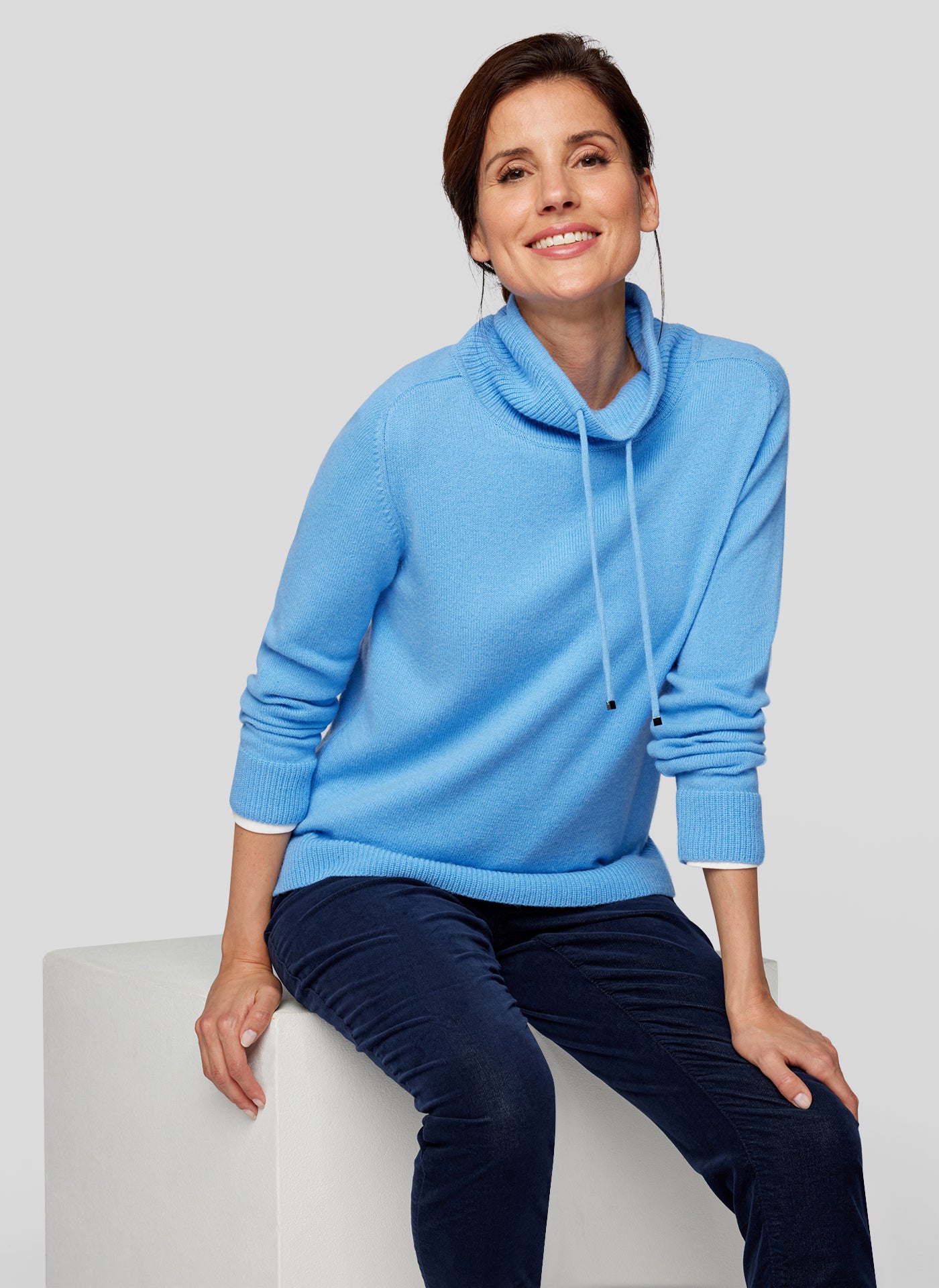 Der gerade geschnittene Strickpullover aus hochwertiger Wollmischung (50% Wolle, 30% Polyamid, 20% Modal) bietet optimale Wärme und ein angenehmes Tragegefühl. Der modische Stehkragen mit Bindeband verleiht dem Pullover einen besonderen Akzent und sorgt gleichzeitig für zusätzlichen Schutz vor Kälte. Mit seinen langen Ärmeln ist dieser unifarbene Pullover perfekt geeignet für winterliche Outfits und lässt sich vielseitig kombinieren. Gönnen Sie sich diesen stilvollen Begleiter für die kalte Jahreszeit!