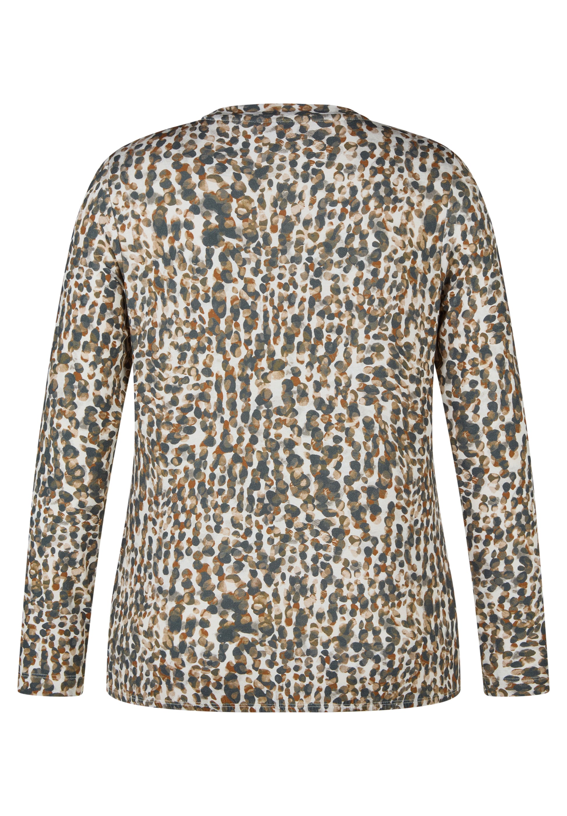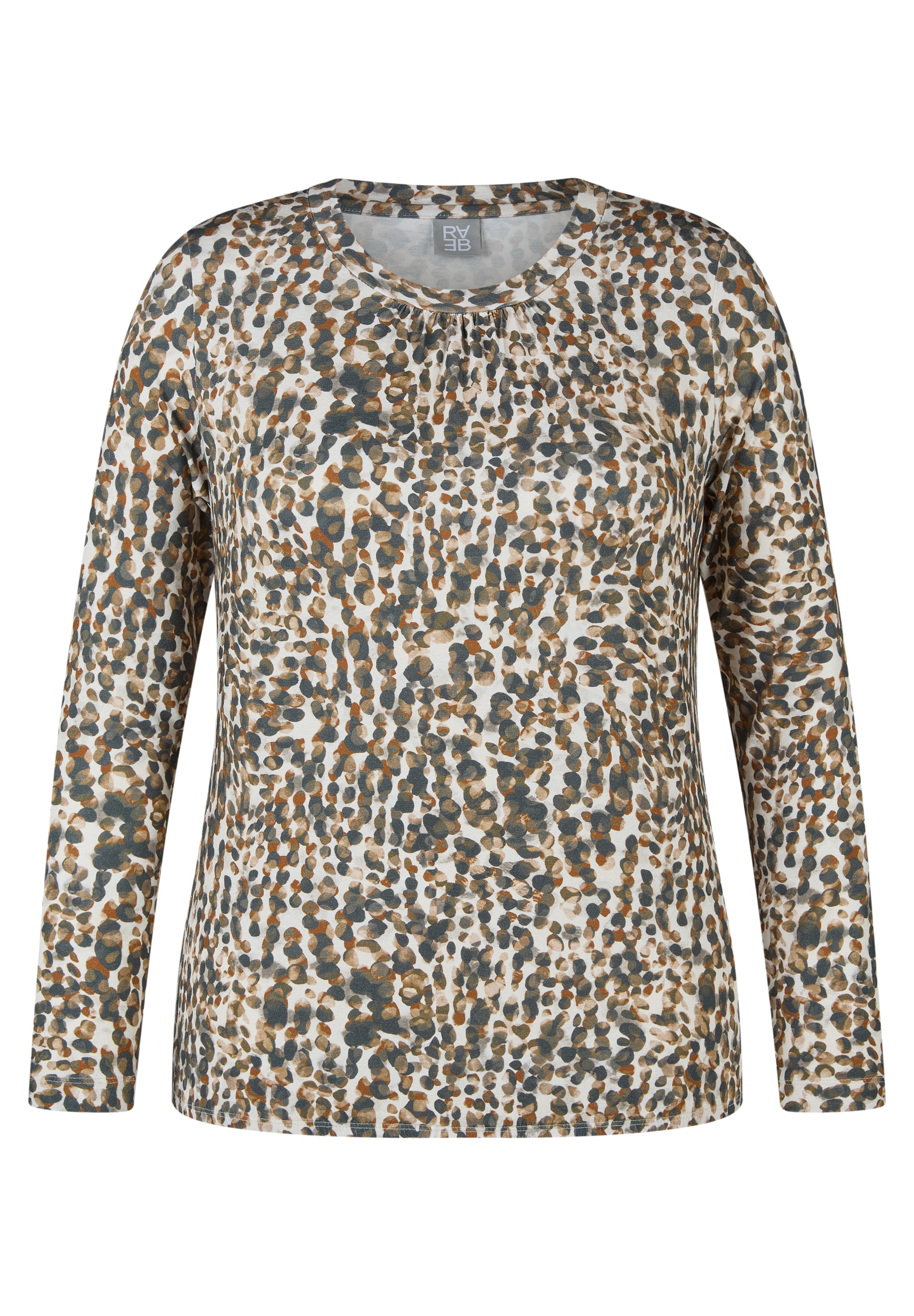 Ein bequemes Shirt mit stilvollem Muster für Alltag und Freizeit. Das Oberteil aus elastischem Viskosemix überzeugt durch seinen grafischen Print, den klassischen Rundhalsausschnitt und die feinen Fältchen am Halsausschnitt. Der figurumspielende Schnitt sorgt für angenehmen Tragekomfort. Softer Jersey mit Viskose. Elastisch und bequem Dezente Falten vorn. Rundhalsausschnitt. Grafisches Allover-Design. Pflegeleichtes Material.