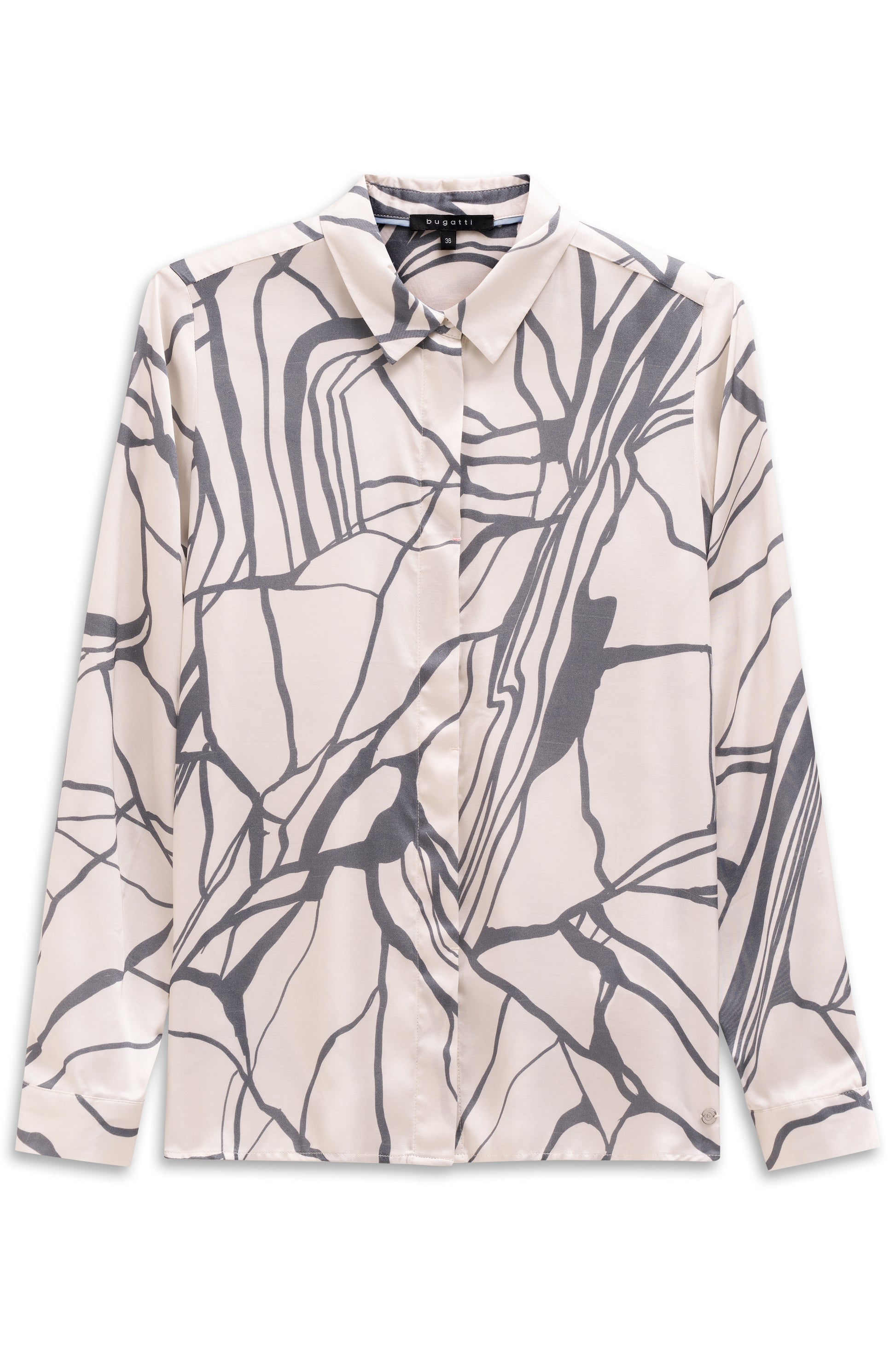 Klassische Hemdbluse mit grafischem Print und verdeckter Knopfleiste aus 100 % Viskose.