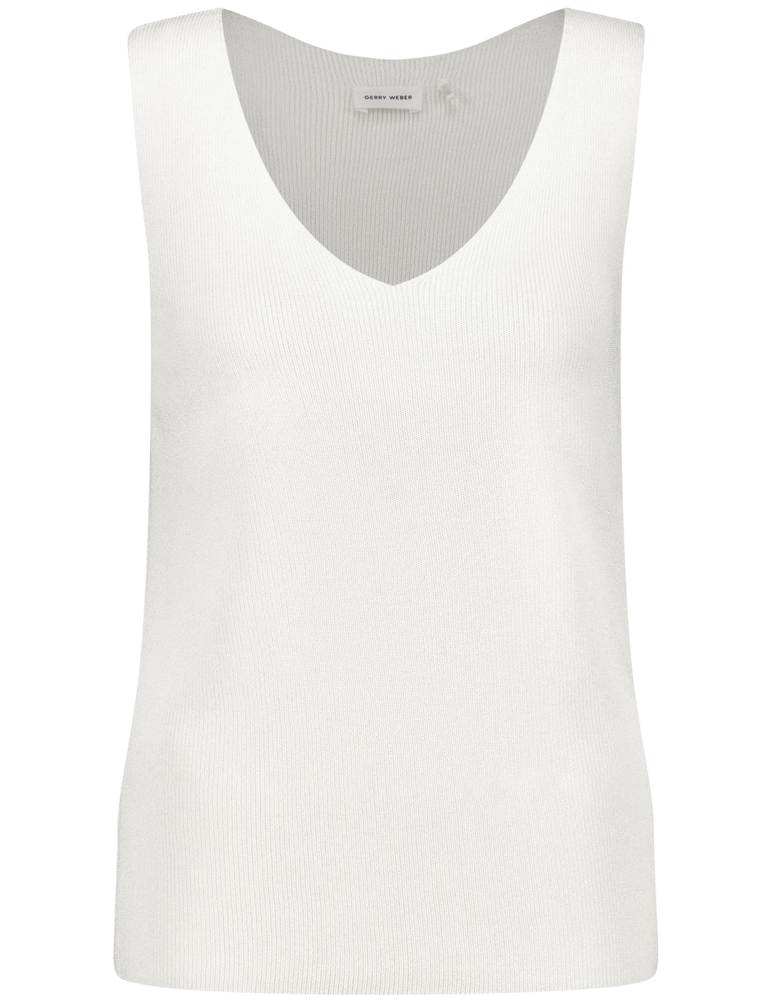 Gerollte Saumkanten. Dieses körpernahe Stricktop aus Rippstrick begeistert mit seiner femininen Silhouette. Der abgerundete V-Ausschnitt setzt elegante Akzente, während die gerollten Saumkanten dem Design eine moderne, lässige Note verleihen. Ein vielseitiges Basic für stylische Looks!