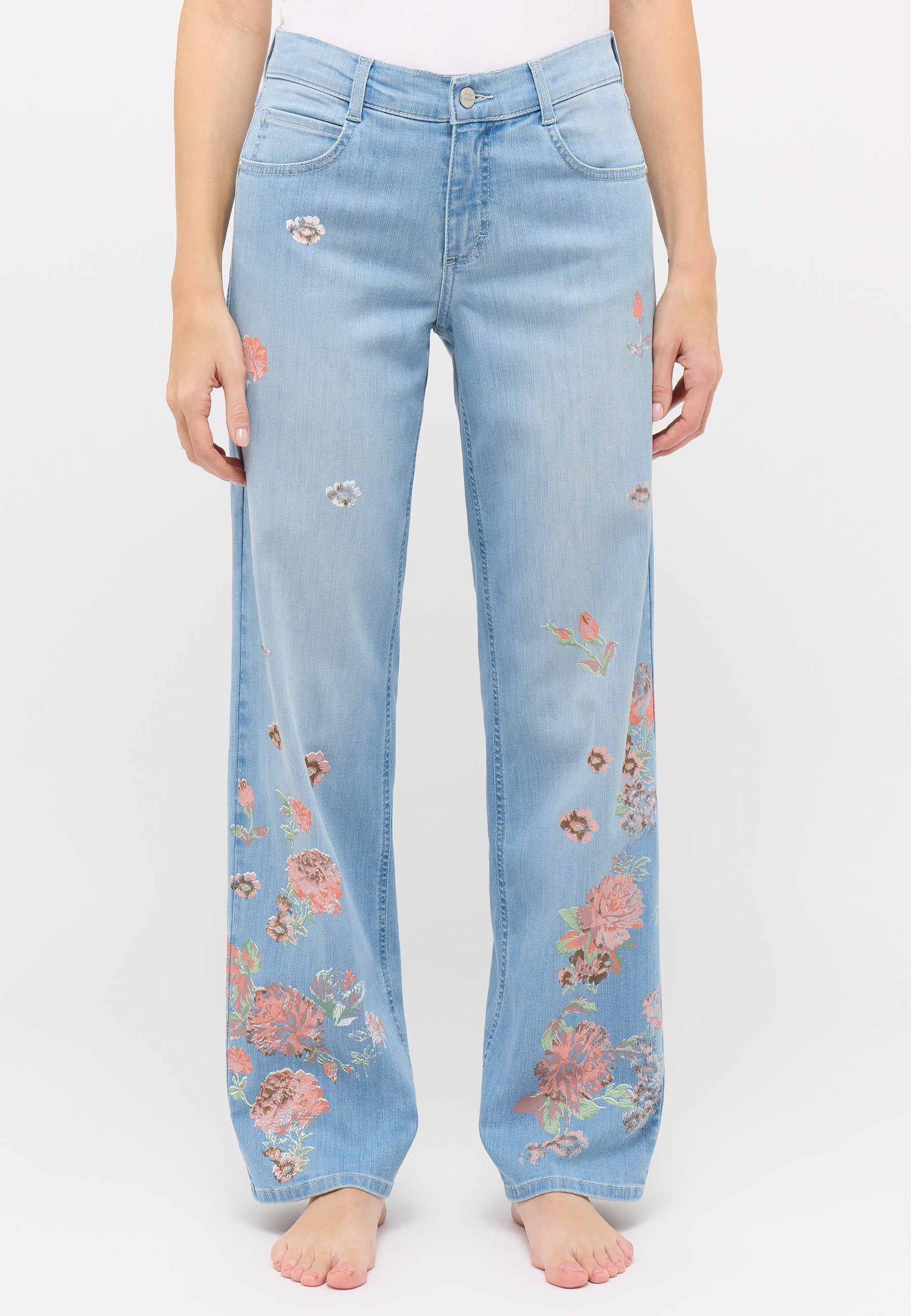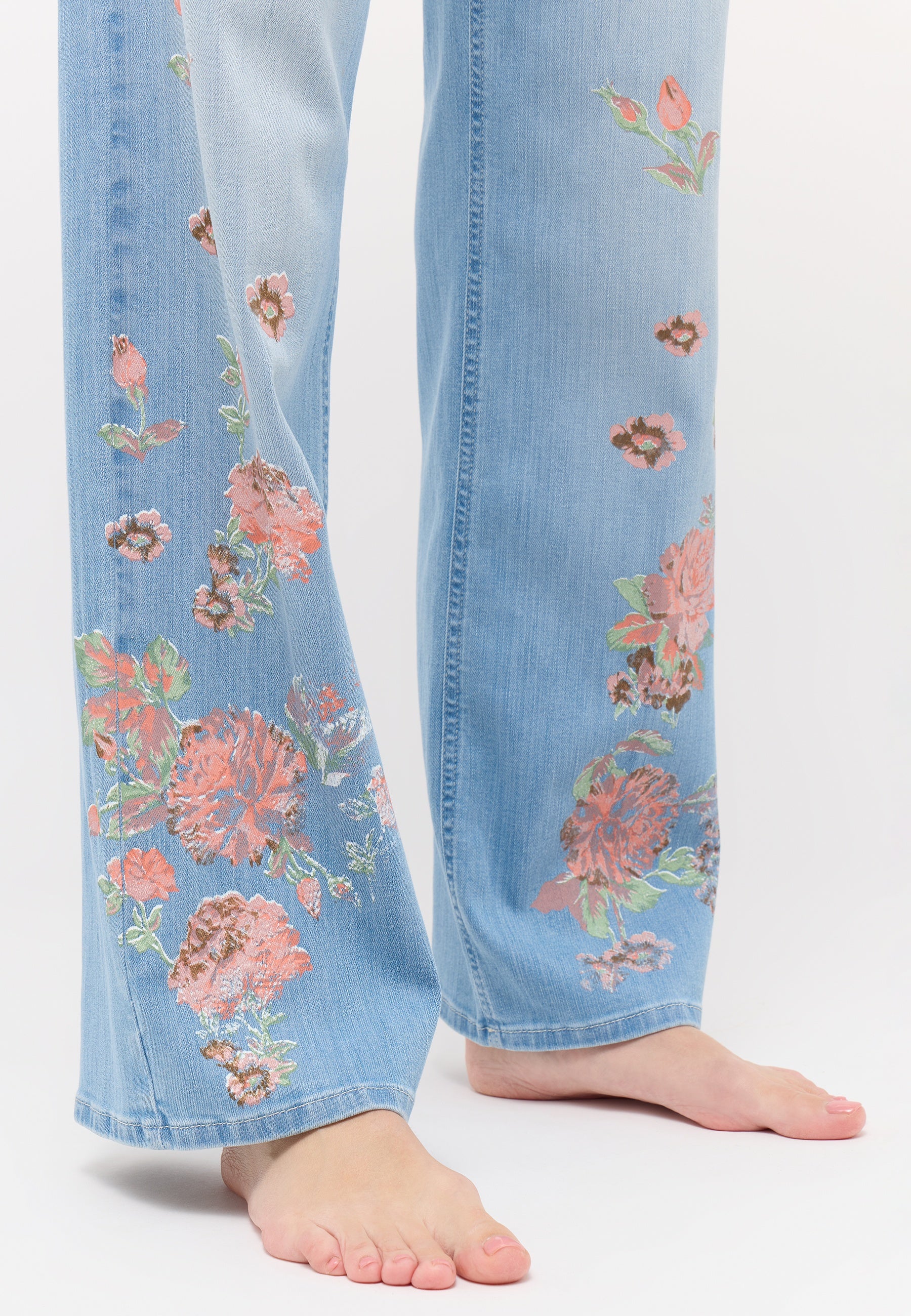 Suchst du nach einer Jeans mit dem gewissen Etwas? Die Liz Jeans im Relaxed Fit mit weitem Bein bietet dir genau das! Der recycelte Denim und der florale Print setzen stylische Akzente, während die 5-Pockets für praktischen Komfort sorgen. Ein trendiger Look, der sich sehen lassen kann!