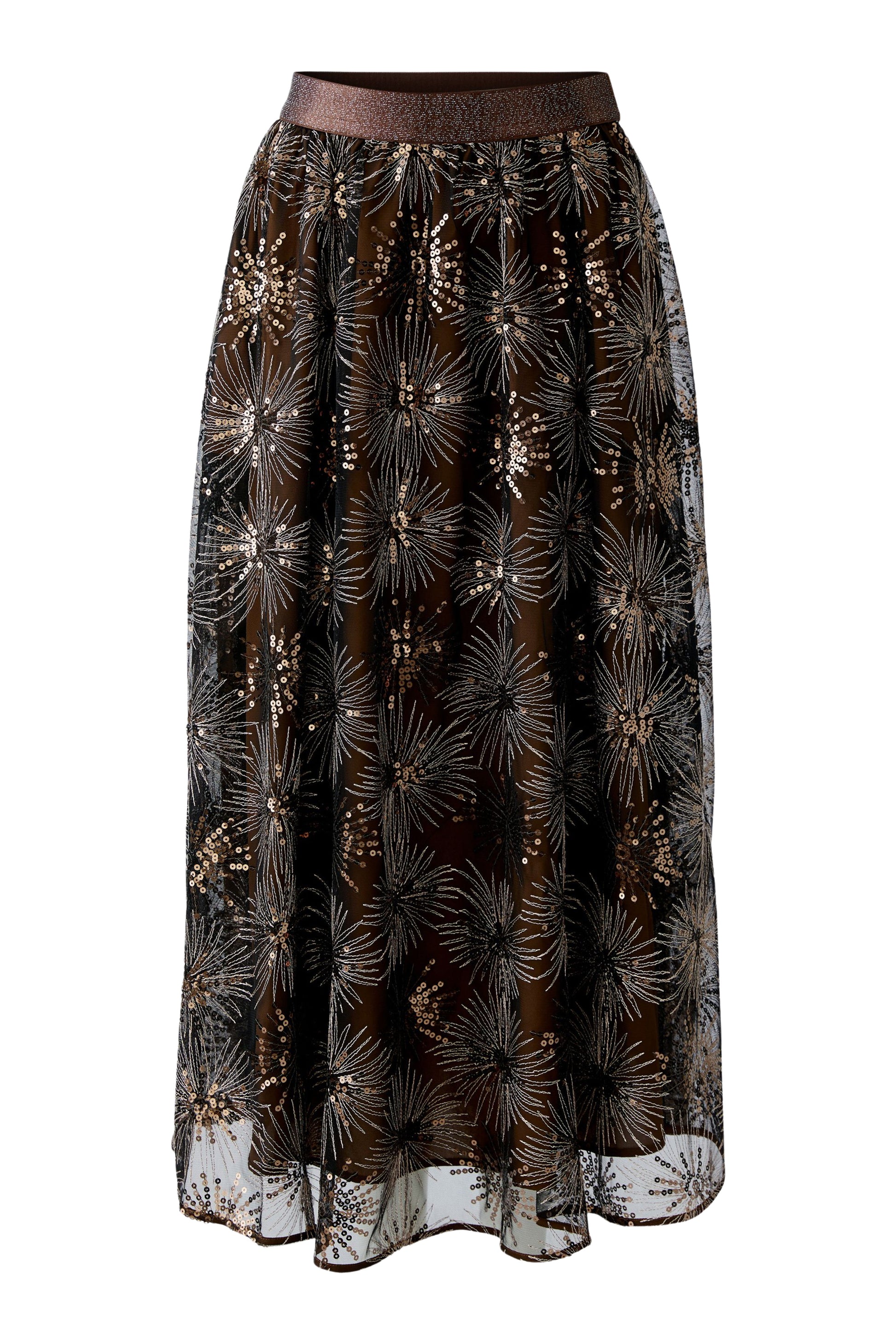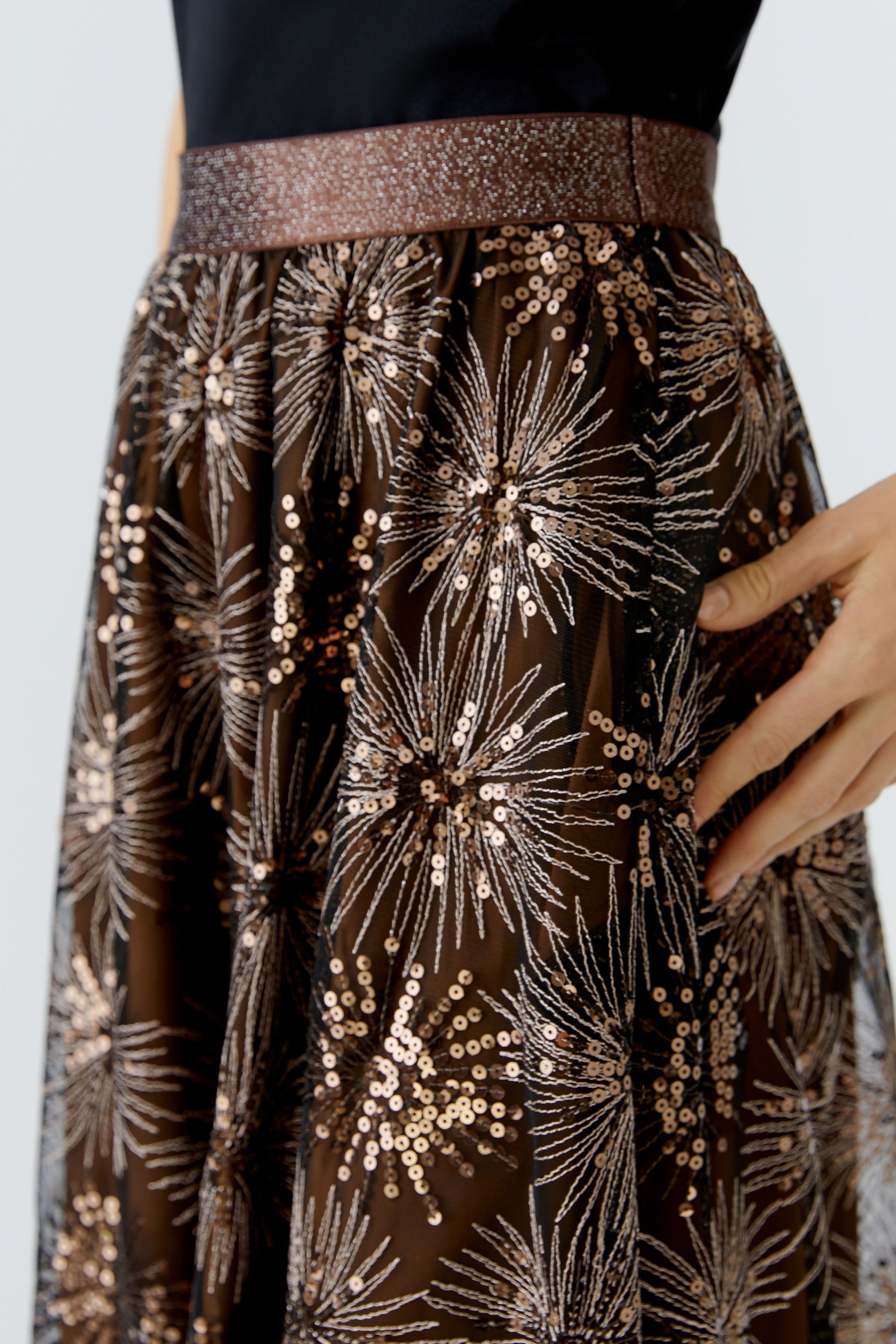 Tüll mit Pailletten und Kontrastgarn bestickt