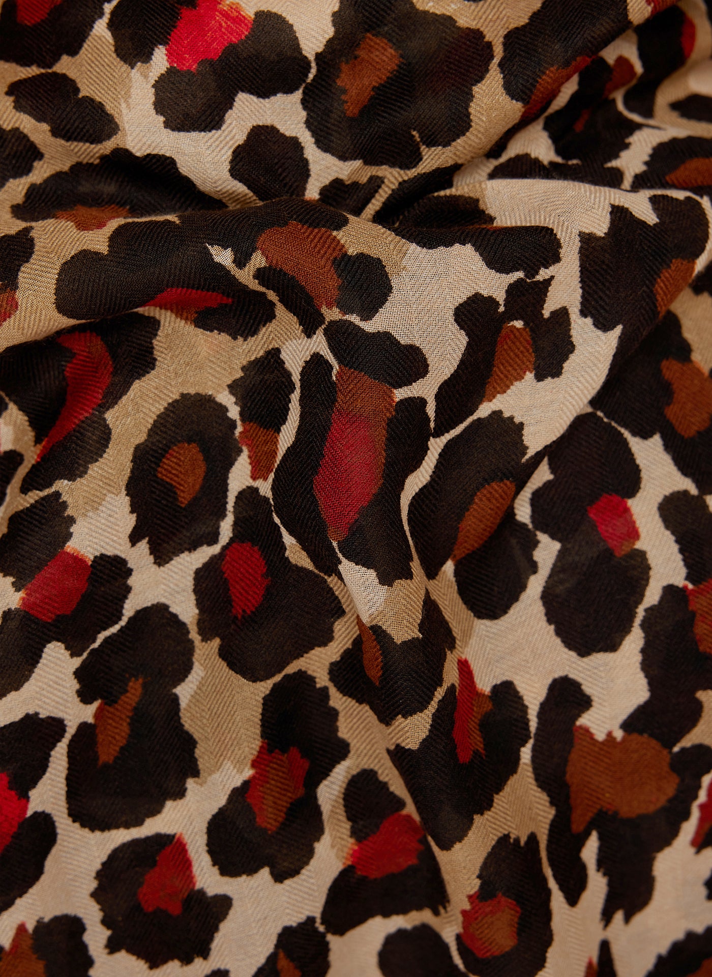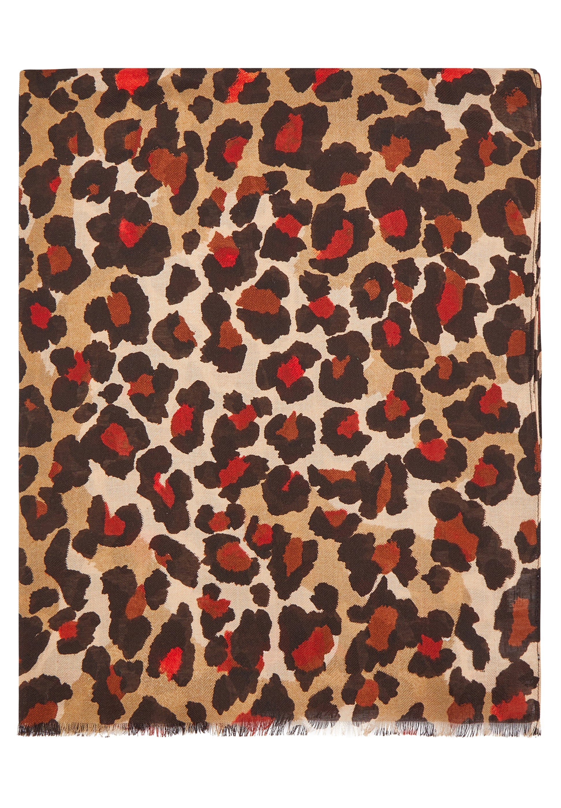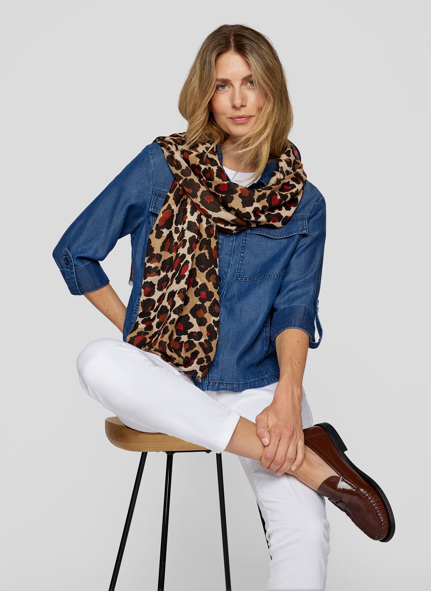 Dieser Schal mit aufregendem Leopardenmuster ist das perfekte Accessoire, um jedem Outfit eine Prise Eleganz und Abenteuer zu verleihen. Kombination aus warmen Brauntönen und leuchtendem Orange für vielseitige Styling-Optionen. Perfekt zum Tragen als Schal, Halstuch oder sogar als Gürtel.