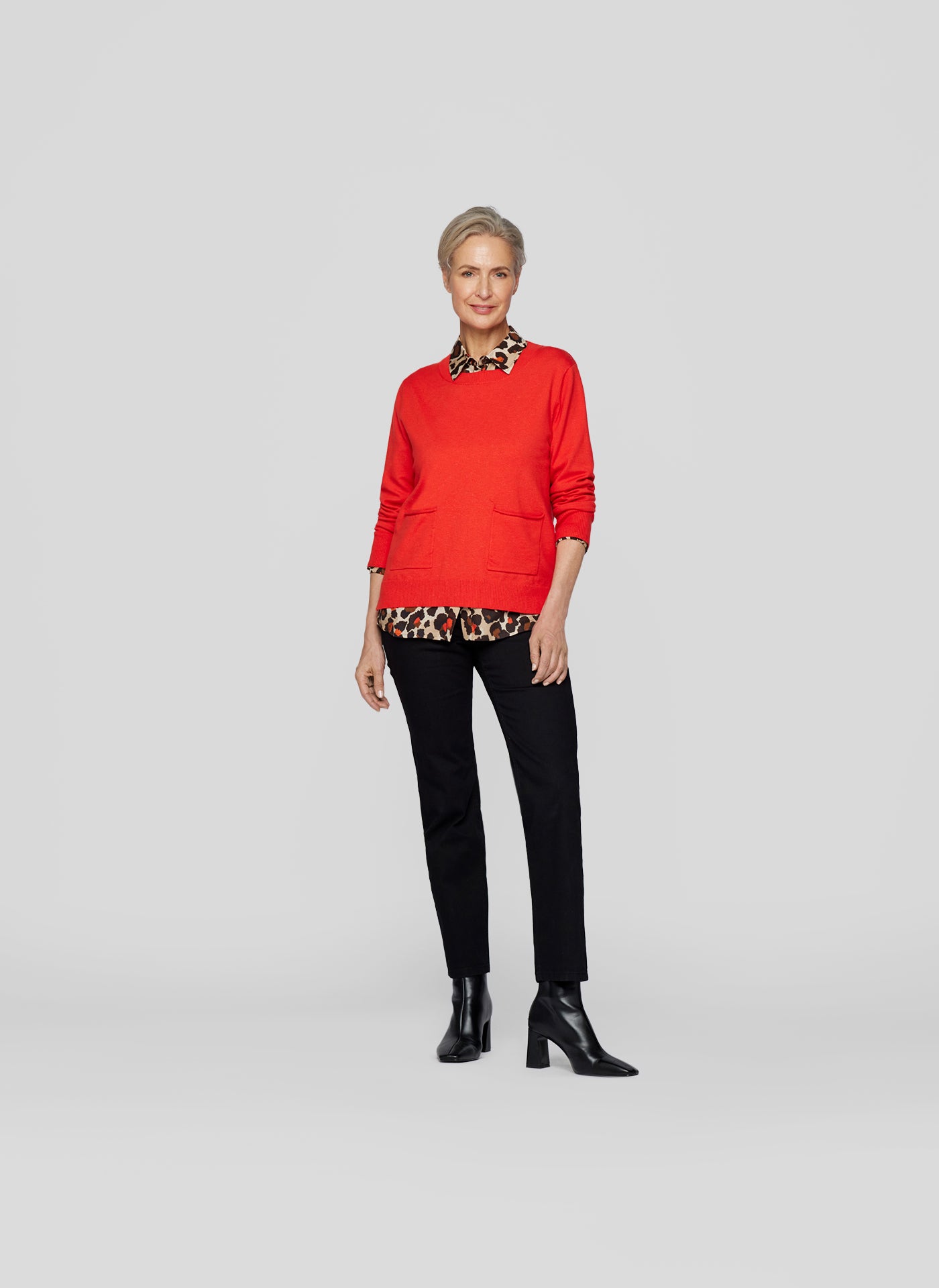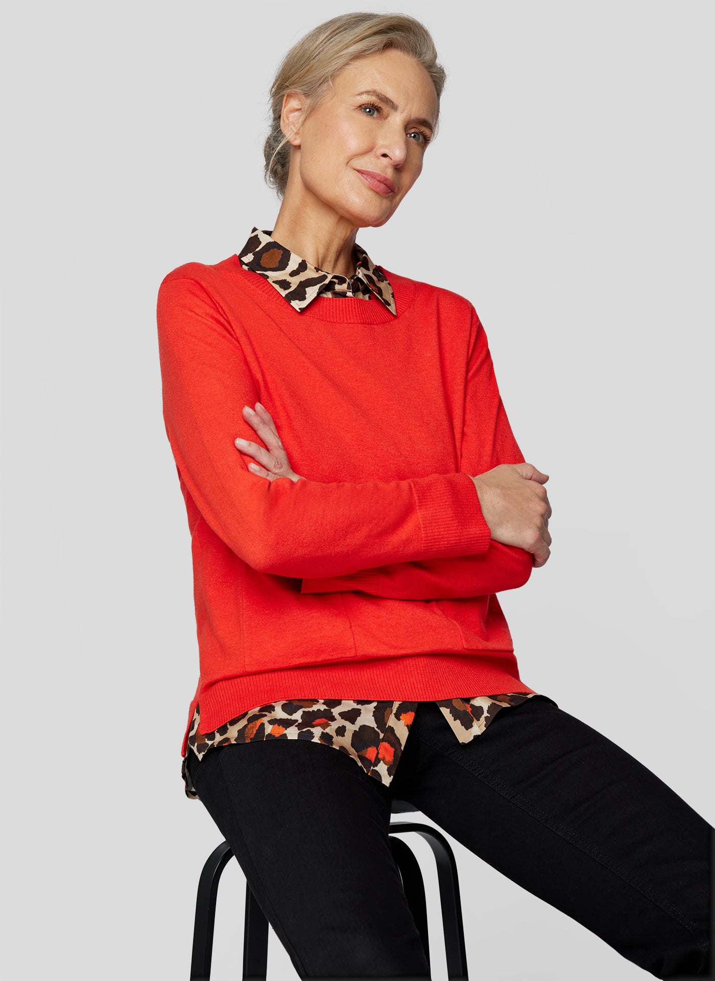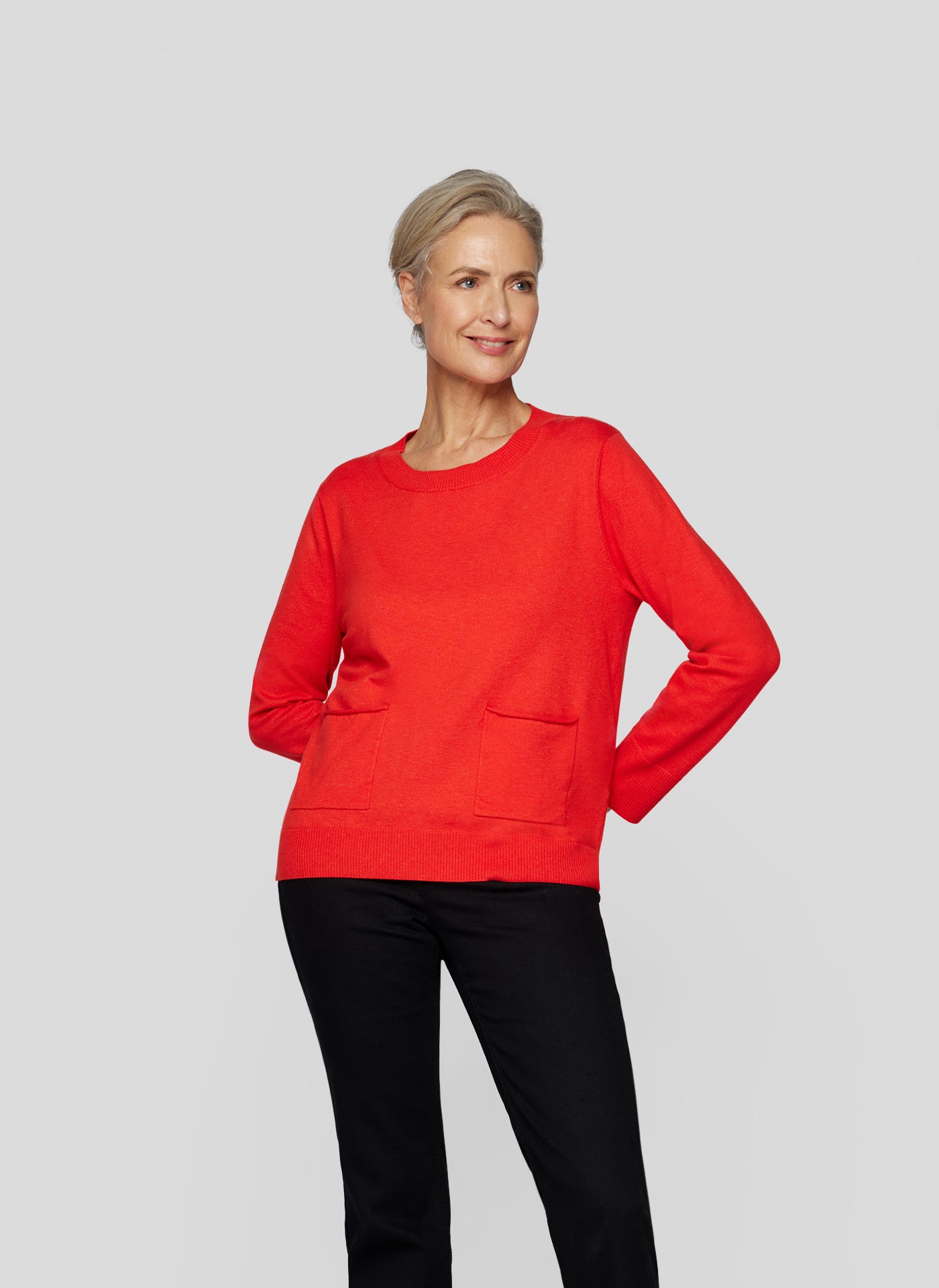 Der unifarbene Rundhals-Pullover in Orange oder Petrol besteht aus einer hochwertigen Mischung von 50% Polyester, 30% Viskose und 20% Polyamid, die für ein angenehmes Tragegefühl sorgt. Mit seinem geraden Schnitt und den langen Ärmeln ist er ideal für kühlere Herbsttage. Die aufgesetzten Taschen setzen dabei einen kleinen stylishen Akzent. Kombinieren Sie diesen vielseitigen Pullover entspannt mit Ihren Lieblingshosen oder -Röcken für einen stilvollen Look.