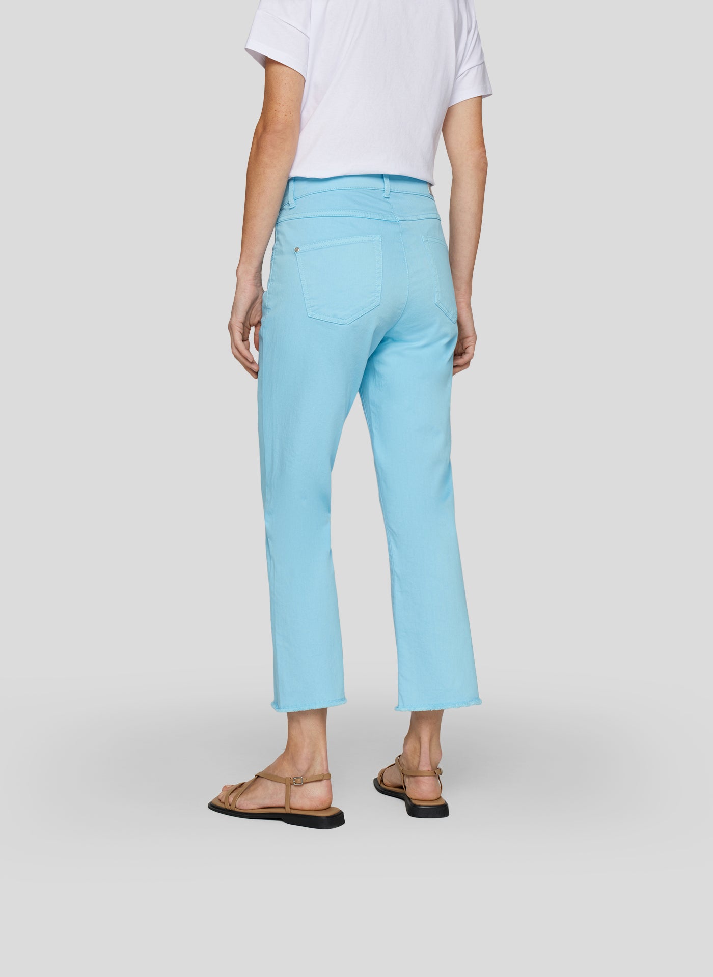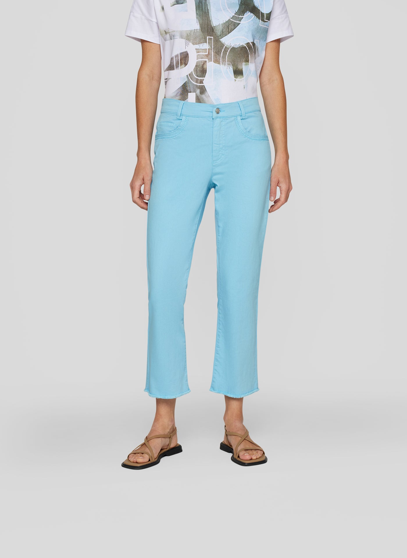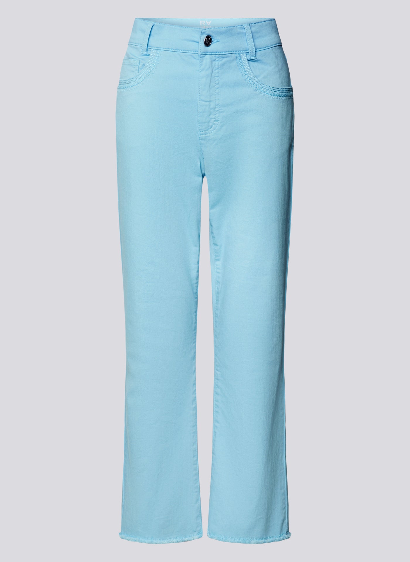 Der moderne Schnitt mit leicht ausgestelltem Bein sorgt für einen lässigen Look, während die dezenten Ziernähte an den Taschen stilvolle Akzente setzen. Ein besonderes Highlight sind die fransigen Abschlüsse, die der Jeans einen trendigen, entspannten Touch verleihen. Passform Sunny _ schmal und feminin geschnitten. 7/8-Länge mit leicht ausgestelltem Bein für eine moderne Silhouette. Fransige Saumabschlüsse für einen angesagten Look. Zierdetails an den Taschen für das gewisse Etwas.