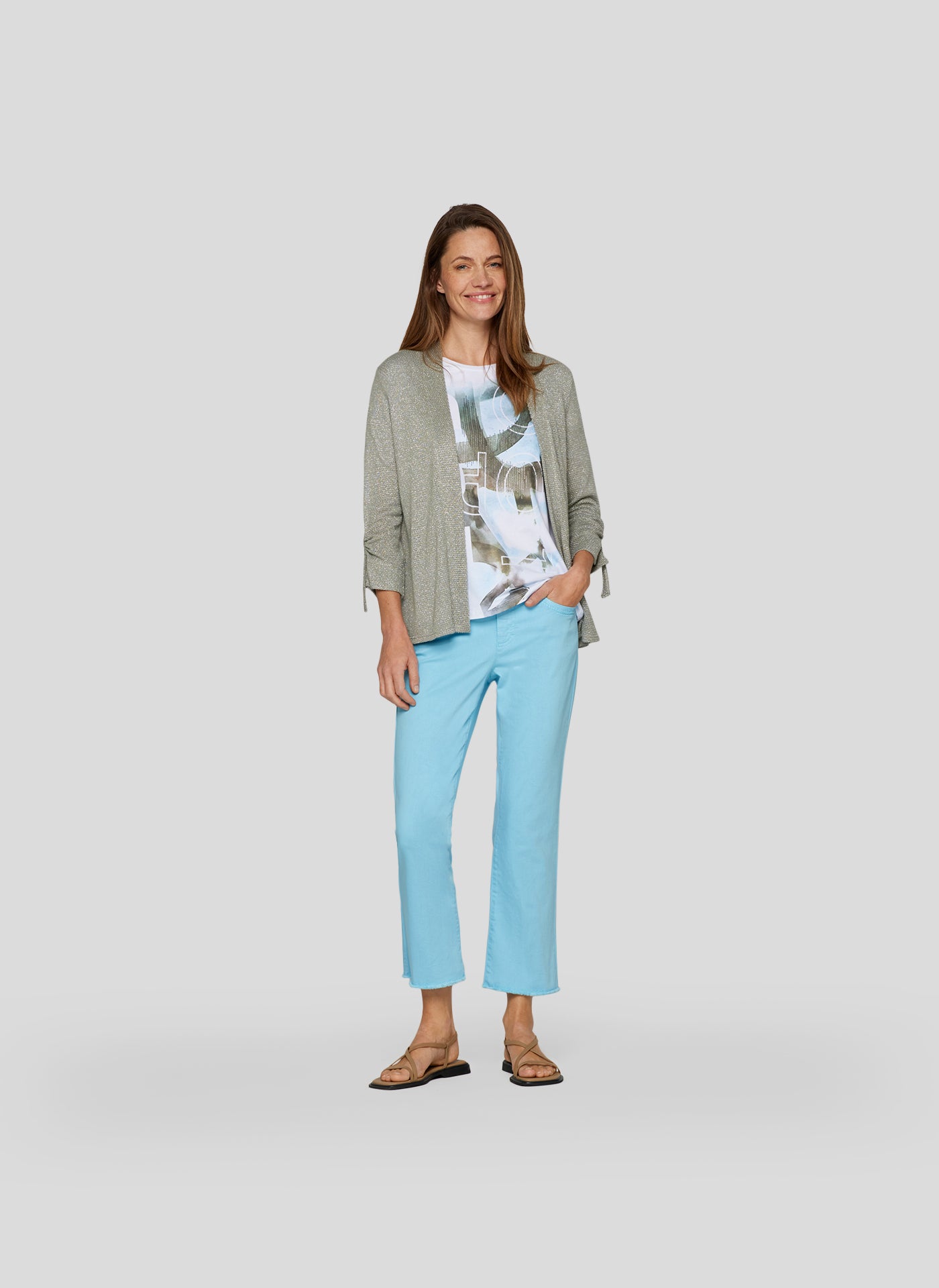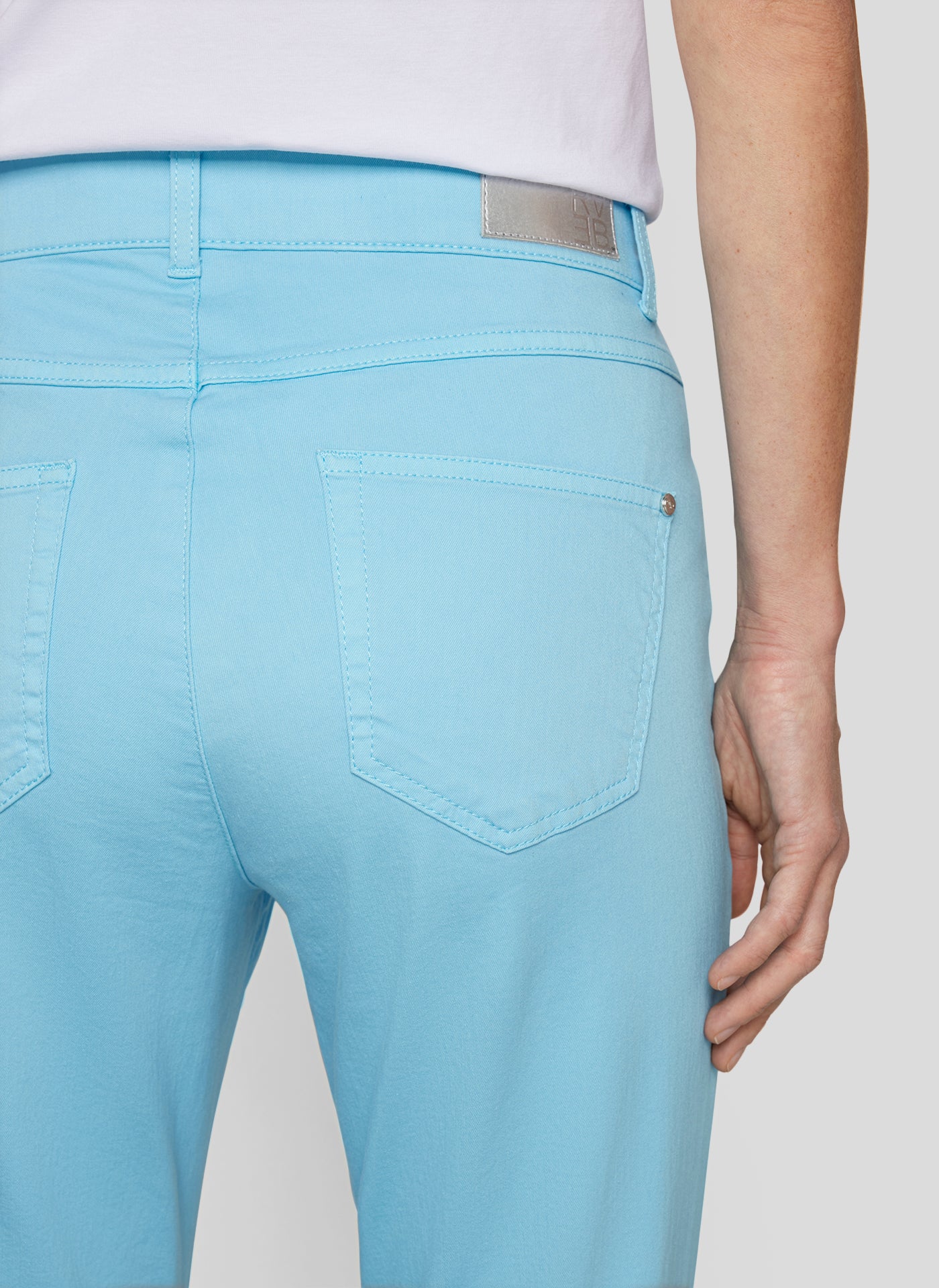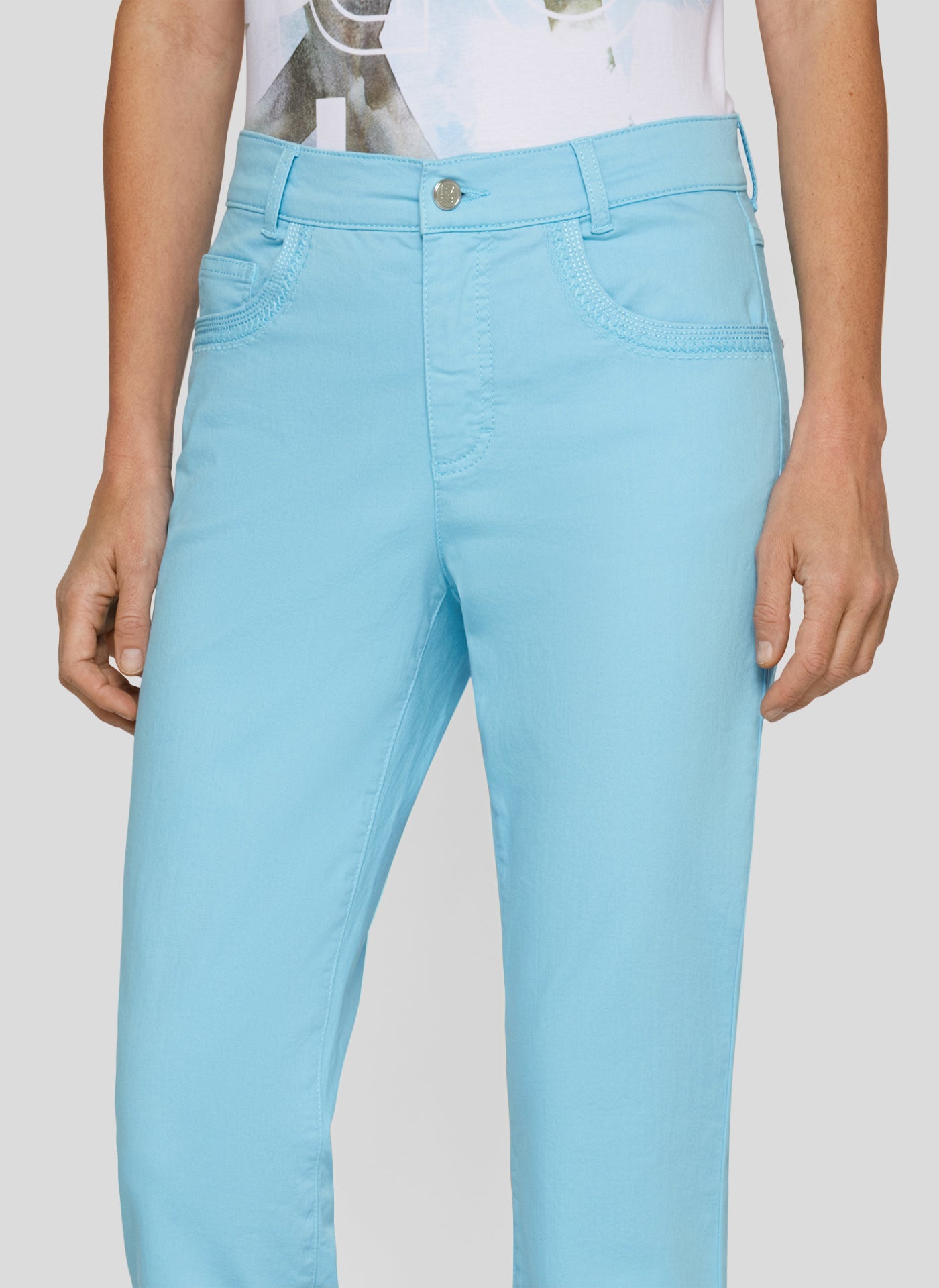 Der moderne Schnitt mit leicht ausgestelltem Bein sorgt für einen lässigen Look, während die dezenten Ziernähte an den Taschen stilvolle Akzente setzen. Ein besonderes Highlight sind die fransigen Abschlüsse, die der Jeans einen trendigen, entspannten Touch verleihen. Passform Sunny _ schmal und feminin geschnitten. 7/8-Länge mit leicht ausgestelltem Bein für eine moderne Silhouette. Fransige Saumabschlüsse für einen angesagten Look. Zierdetails an den Taschen für das gewisse Etwas.