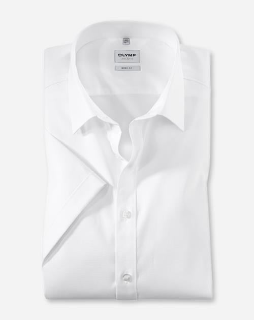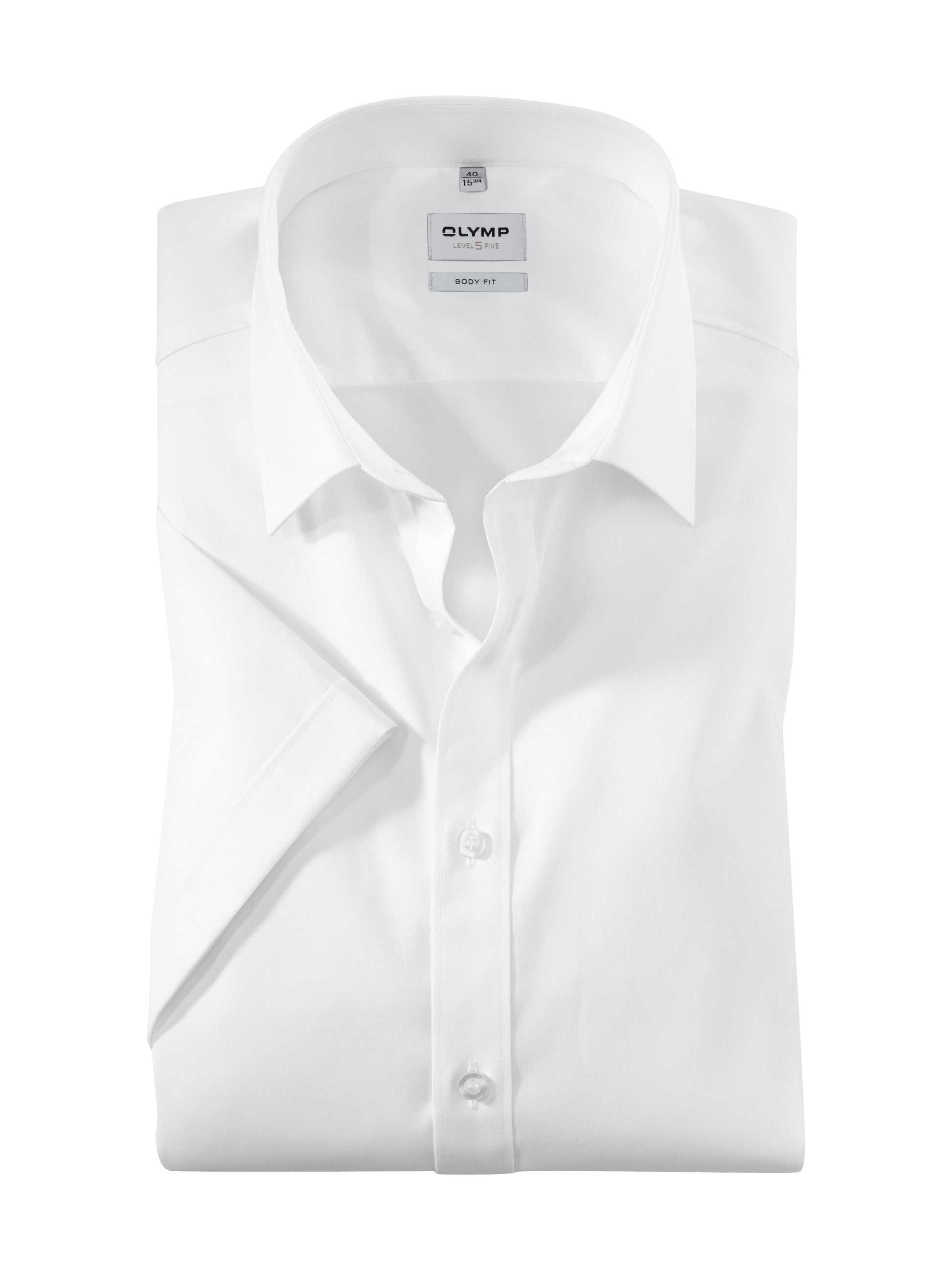 Die junge Hemdenlinie OLYMP Level Five überzeugt auf ganzer Linie: körperbetonte Schnittführung, modische Verarbeitung, bügelleichte Eigenschaften. Business-Garderobe auf einem neuen Level in einem schlichten Oberstoff in Weiß. Ein eleganter Global-Kent-Kragen macht den Style komplett.Das hochwertige Gewebe aus Comfort Stretch bietet ein Höchstmaß an Bewegungsfreiheit – trotz Body-fit-Passform.