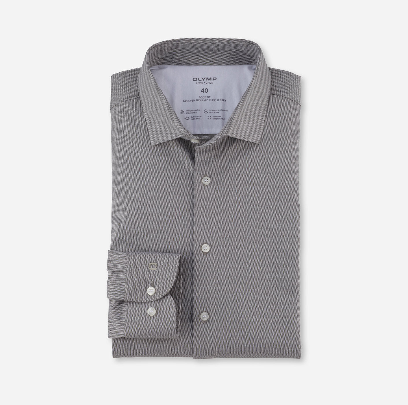 In absoluter Bestform und fein strukturiert präsentiert sich das OLYMP Level Five. Dynamic Flex Jersey ist superleicht, hoch elastisch, atmungsaktiv, schnelltrocknend und bügelleicht. Ein sportives All-Time-Shirt mit smartem Modern Kent und lässig gerundetem Saum, das 24/Seven stilsicher performed.