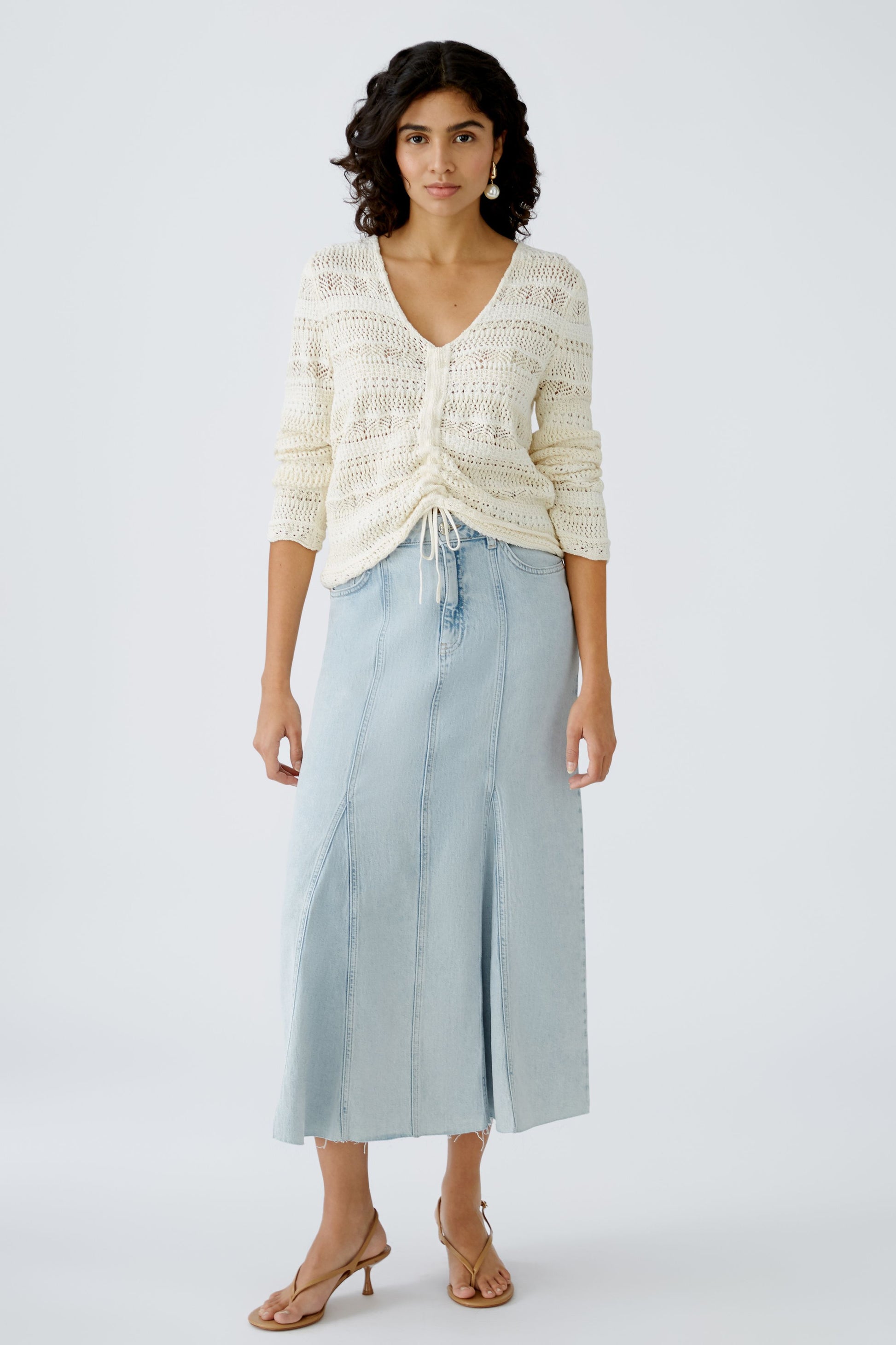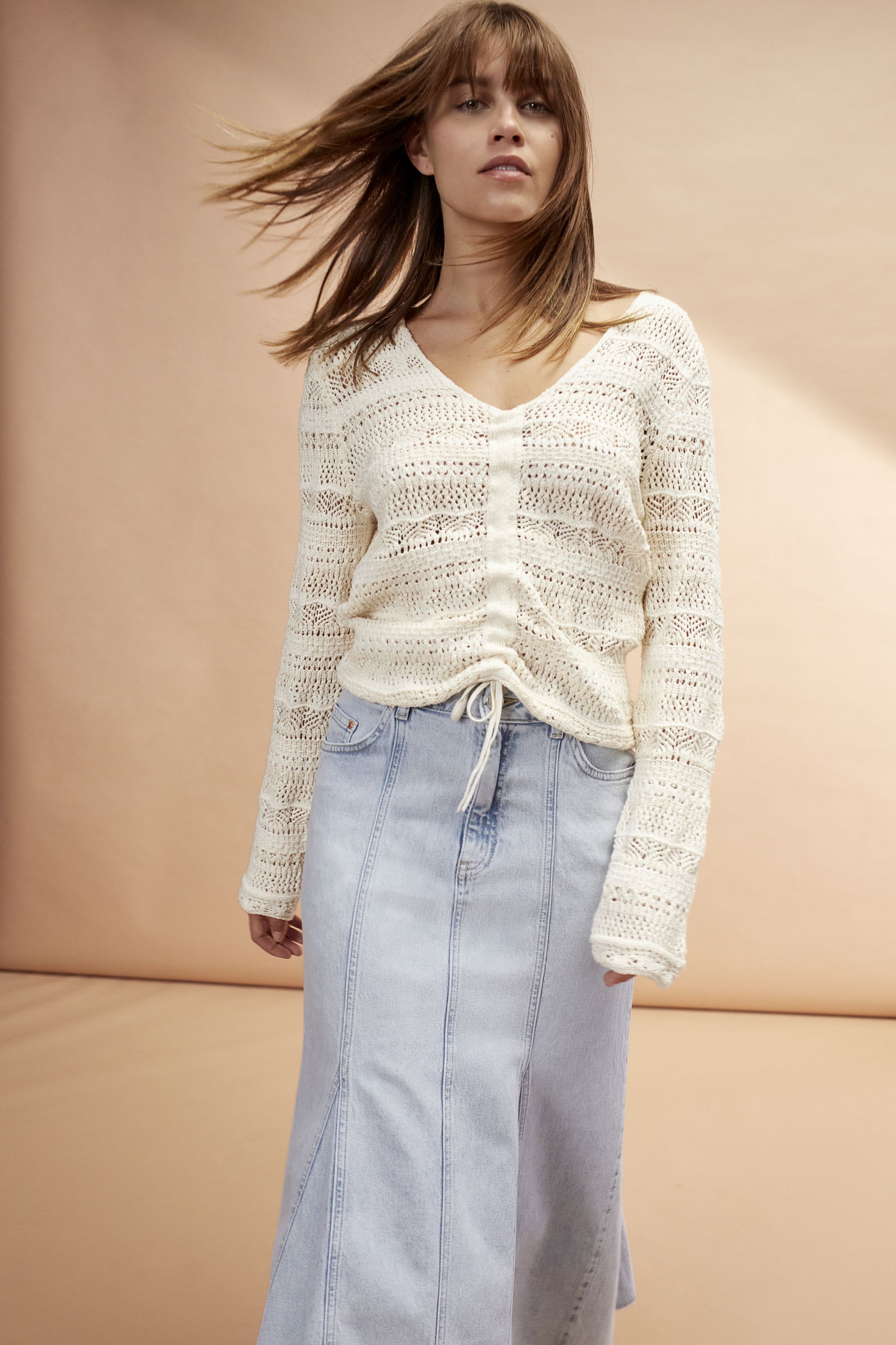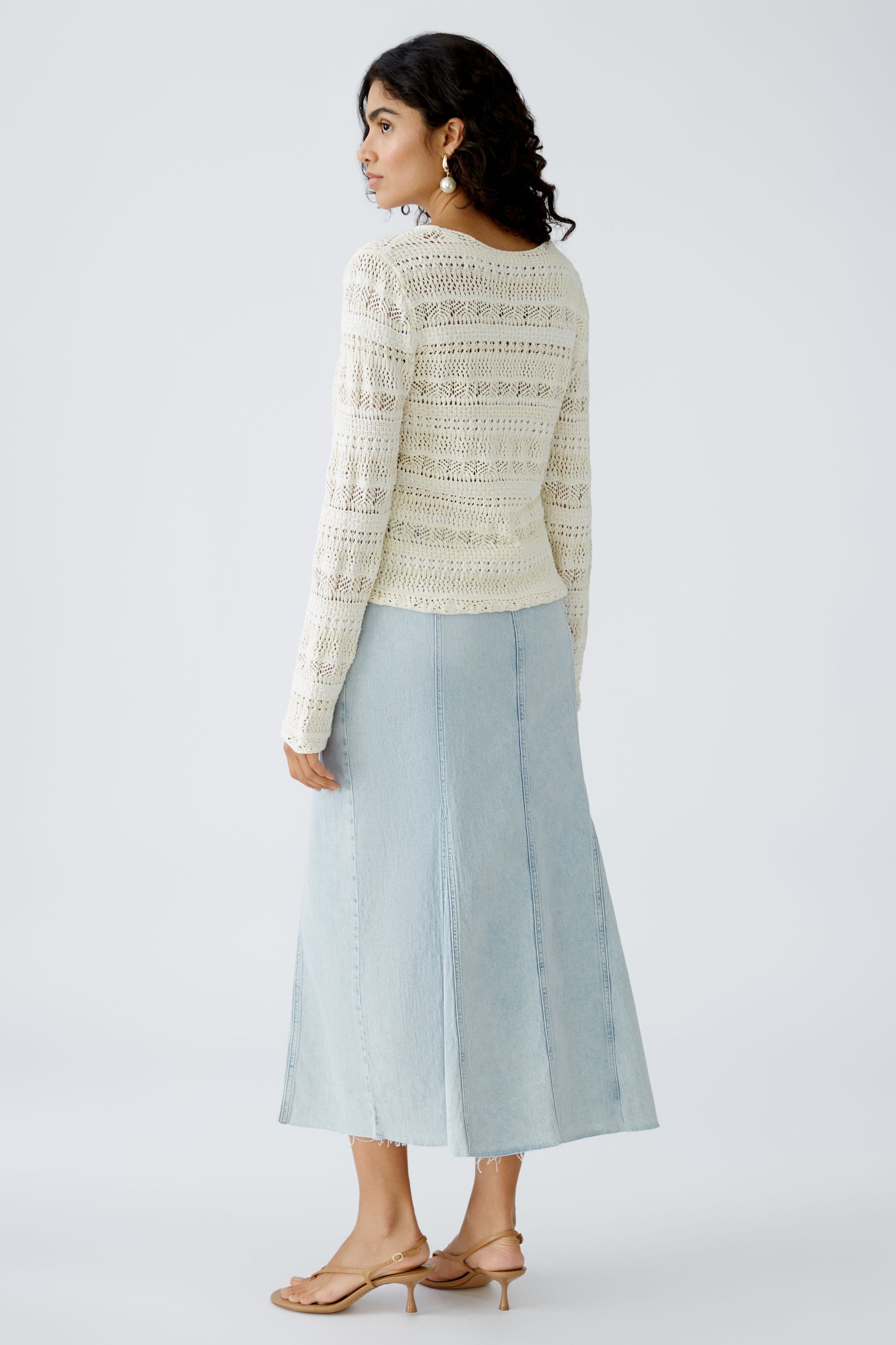 Durch die aufwendige, offene Strickstruktur leicht transparent