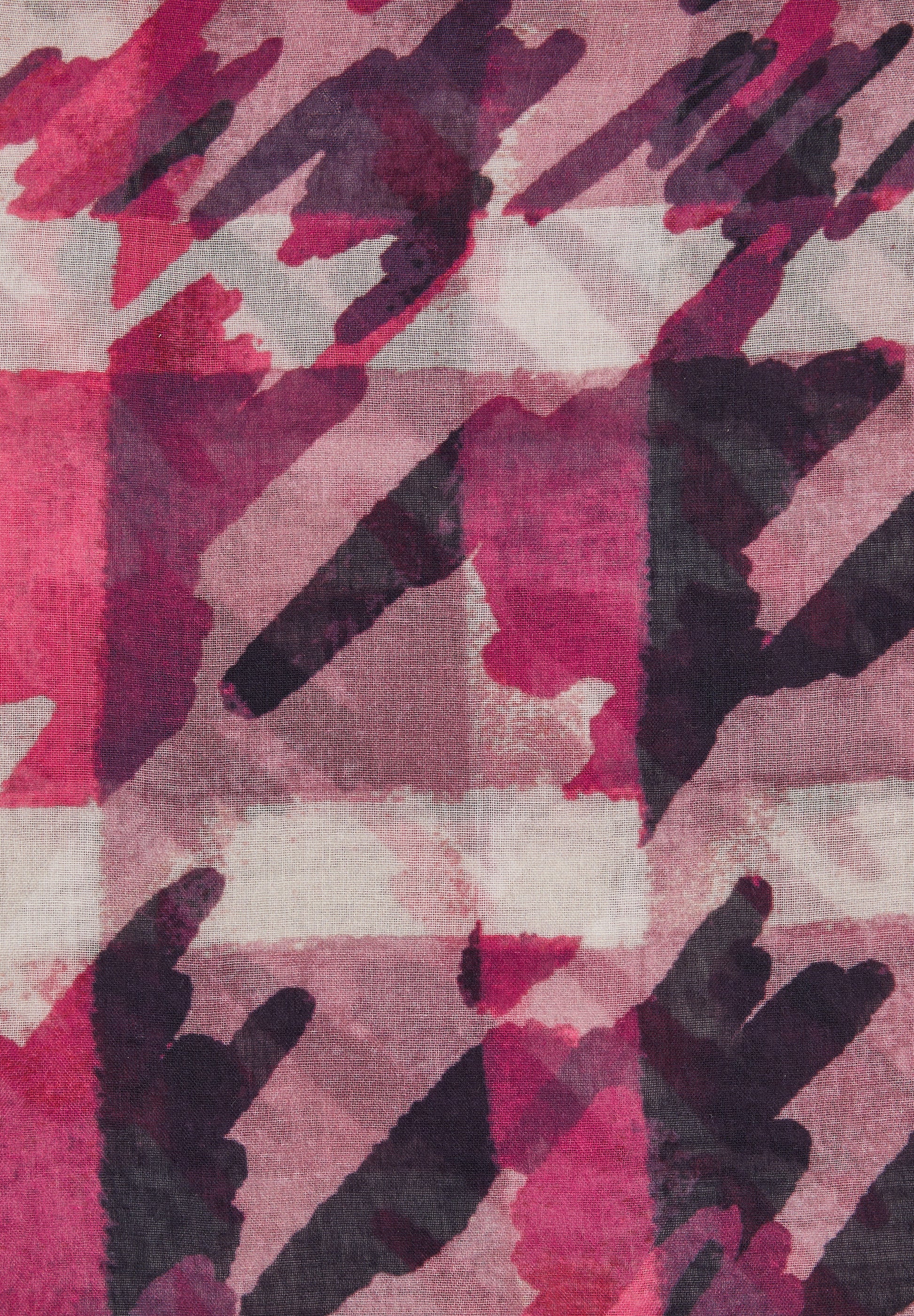 Ein stilvoller Begleiter für viele Gelegenheiten: Dieser Schal begeistert mit einem modern interpretierten Hahnentritt-Design in leuchtenden Beeren- und Rosatönen. Die zarte, halbtransparente Qualität sorgt für einen besonders angenehmen Tragekomfort und verleiht dem Accessoire einen leichten Fall. Perfekt, um schlichte Outfits aufzufrischen oder farbliche Akzente zu setzen. Zarter Webschal mit Print. Modernes Hahnentritt-Muster. Leicht und halbtransparent. Pflegeleichte Qualität. Vielseitig kombinierbar.