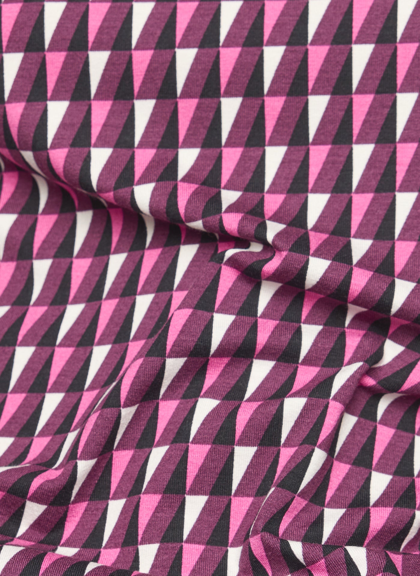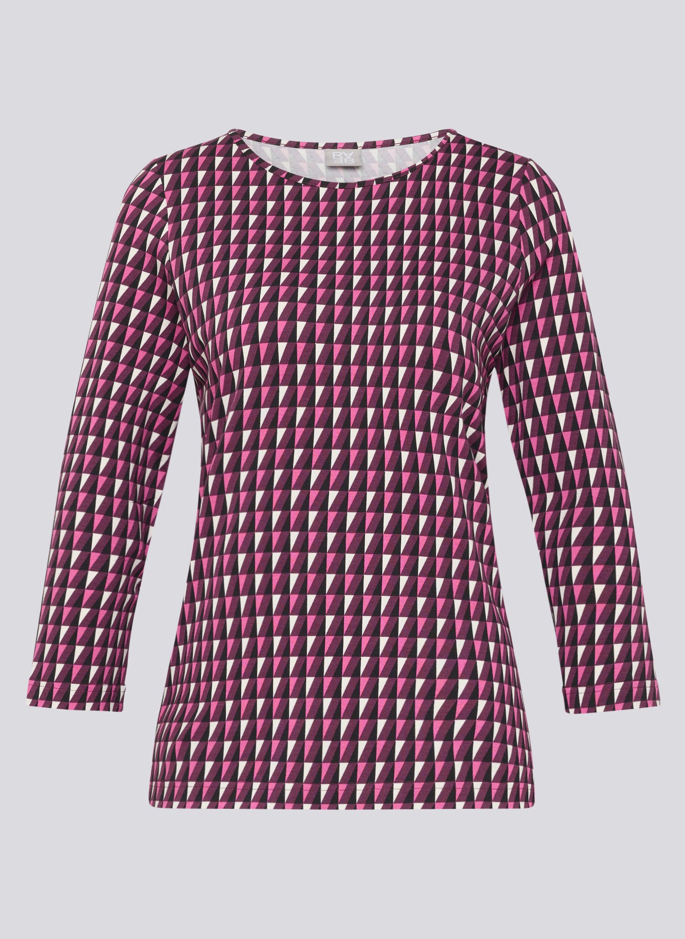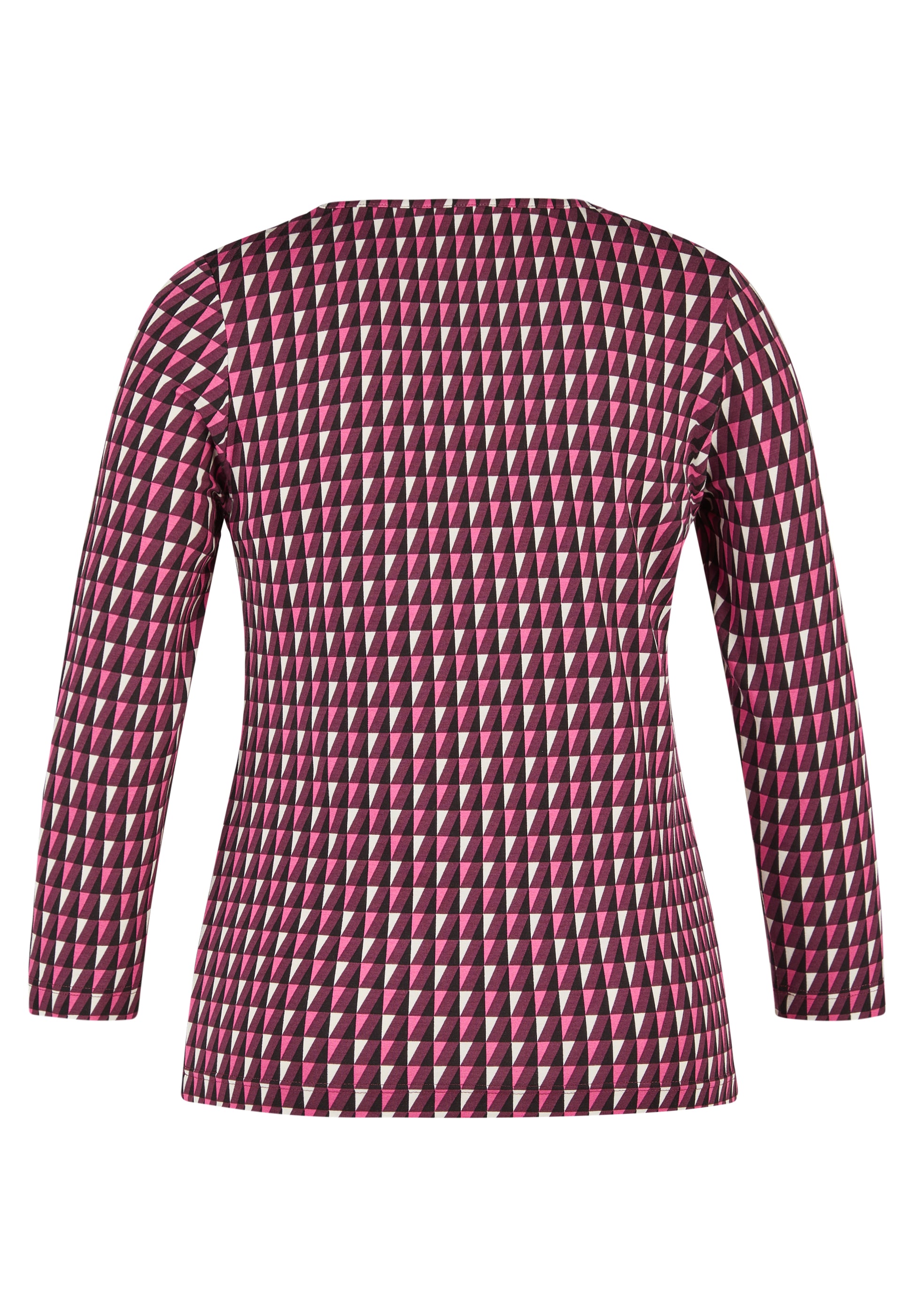 Das auffällige Allover-Muster in grafischer Optik verleiht diesem Shirt einen modernen Look. Die strukturierte Ware mit Stretch-Anteil sorgt für ein angenehmes Tragegefühl und einen formstabilen Sitz. Mit klassischem Rundhalsausschnitt und 3/4-langen Ärmeln eignet sich das Modell ideal für abwechslungsreiche Alltags-Outfits. Grafisches Allover-Muster. 3/4-lange Ärmel. Rundhalsausschnitt.