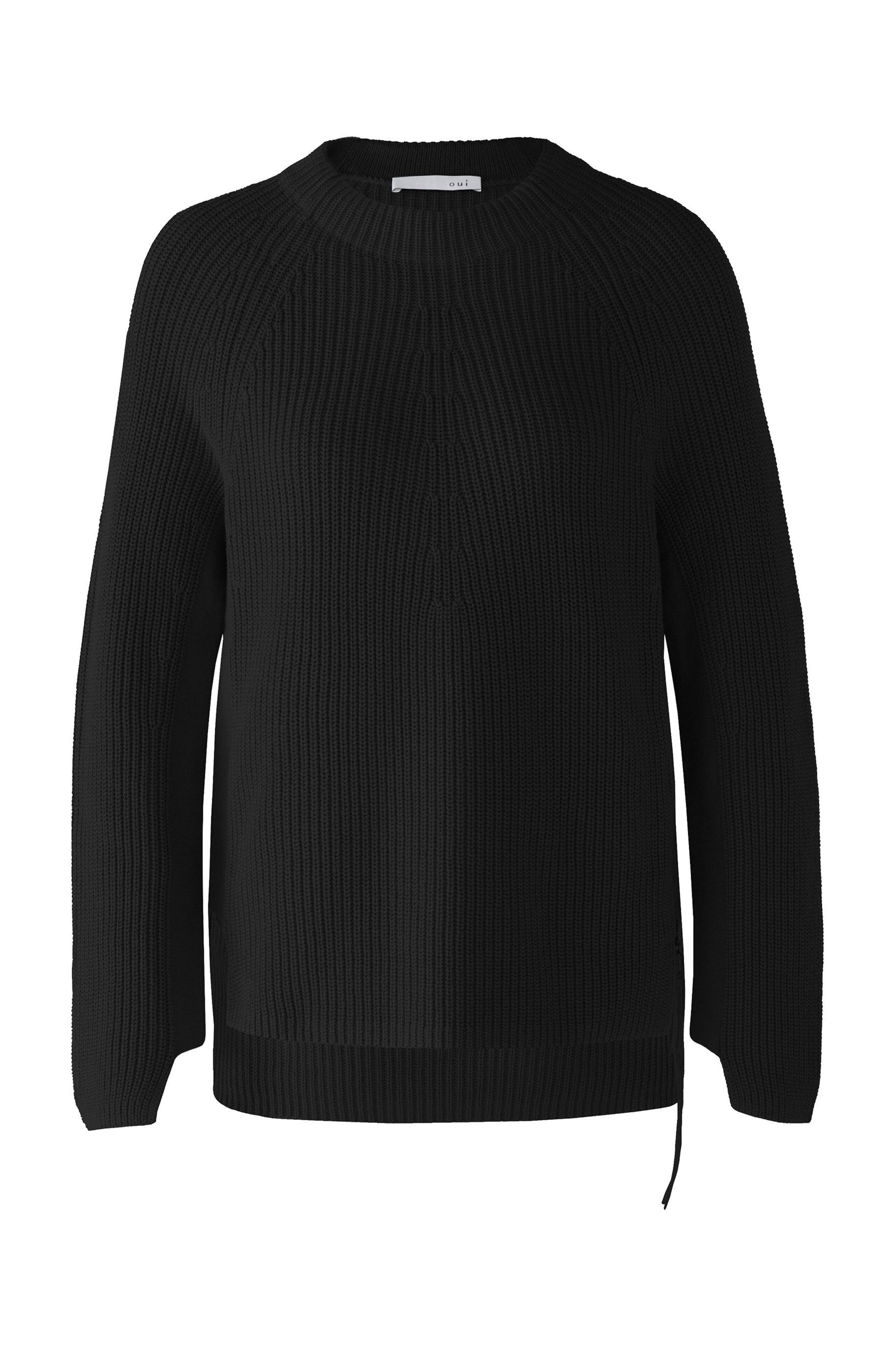 Reine Baumwolle, in Rippe gestrickt, mit figurschmeichelndem seitlichem Feinstrickeinsatz am Body und Ärmel