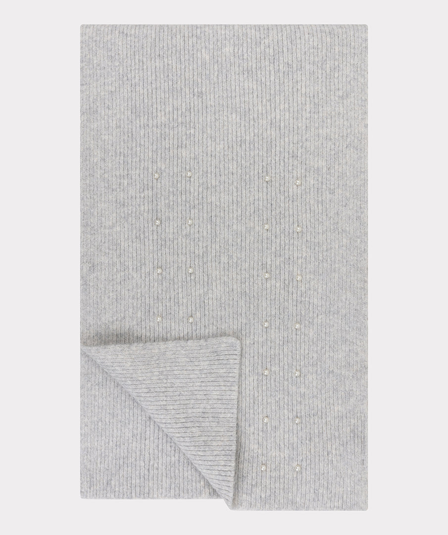 Kuschelig warmer Schal mit hübschen Perlen, kombinieren Sie diesen Schal mit dem passenden Stirnband oder der Mütze. Der Schal besteht aus 53% Baumwolle, 25% Acryl, 20% Polyester und 2% Elasthan. Das Model ist 1,73 m groß und trägt Größe S.