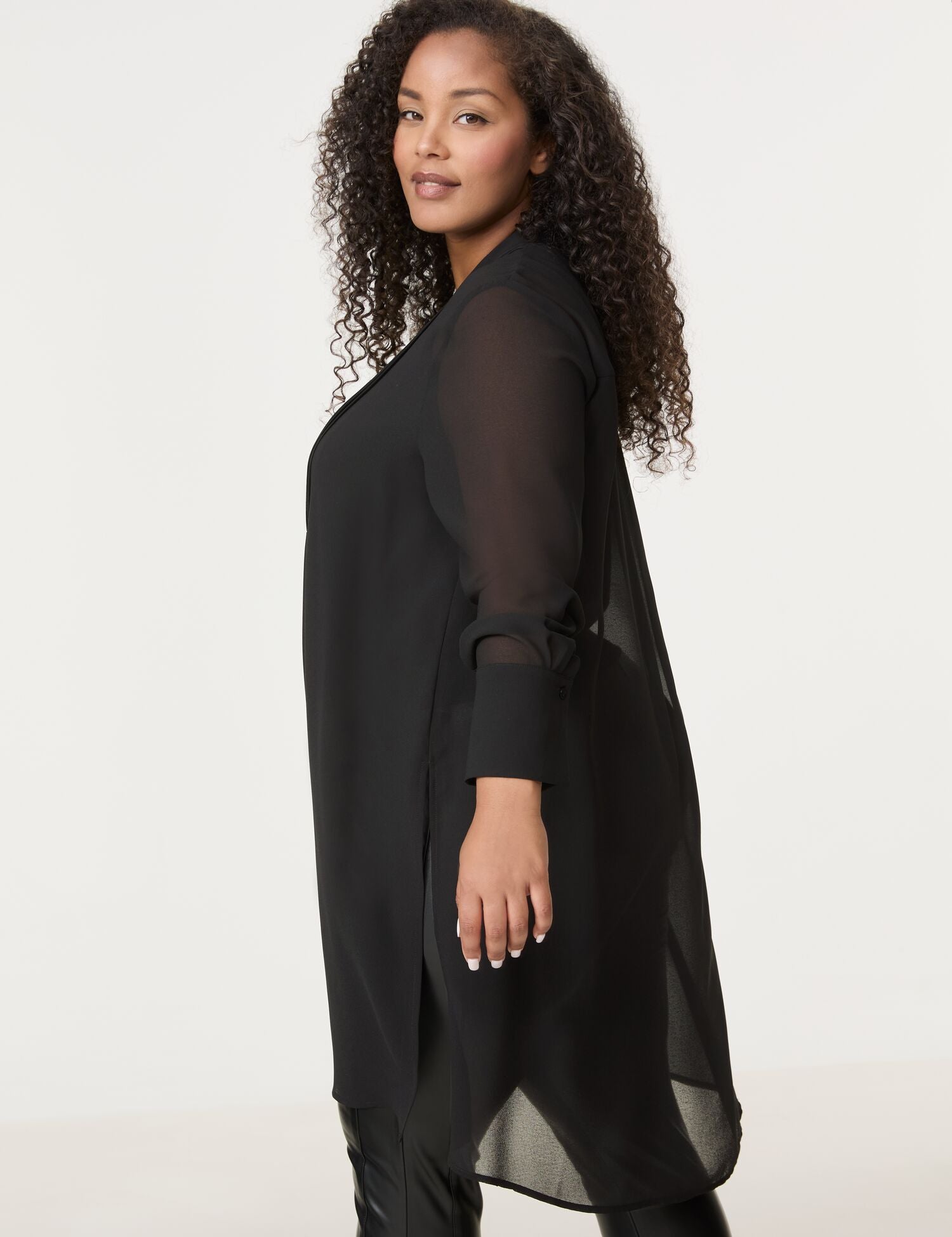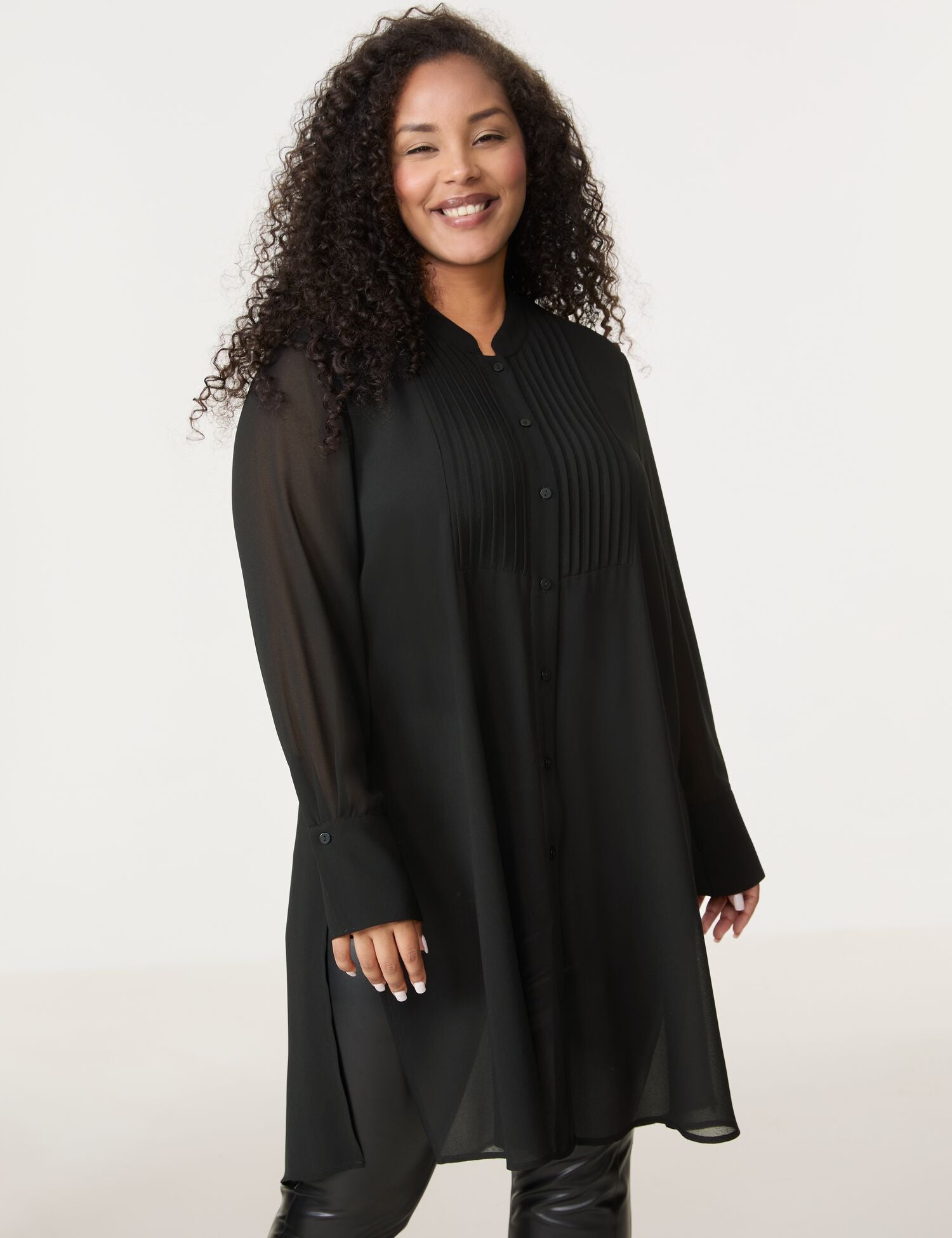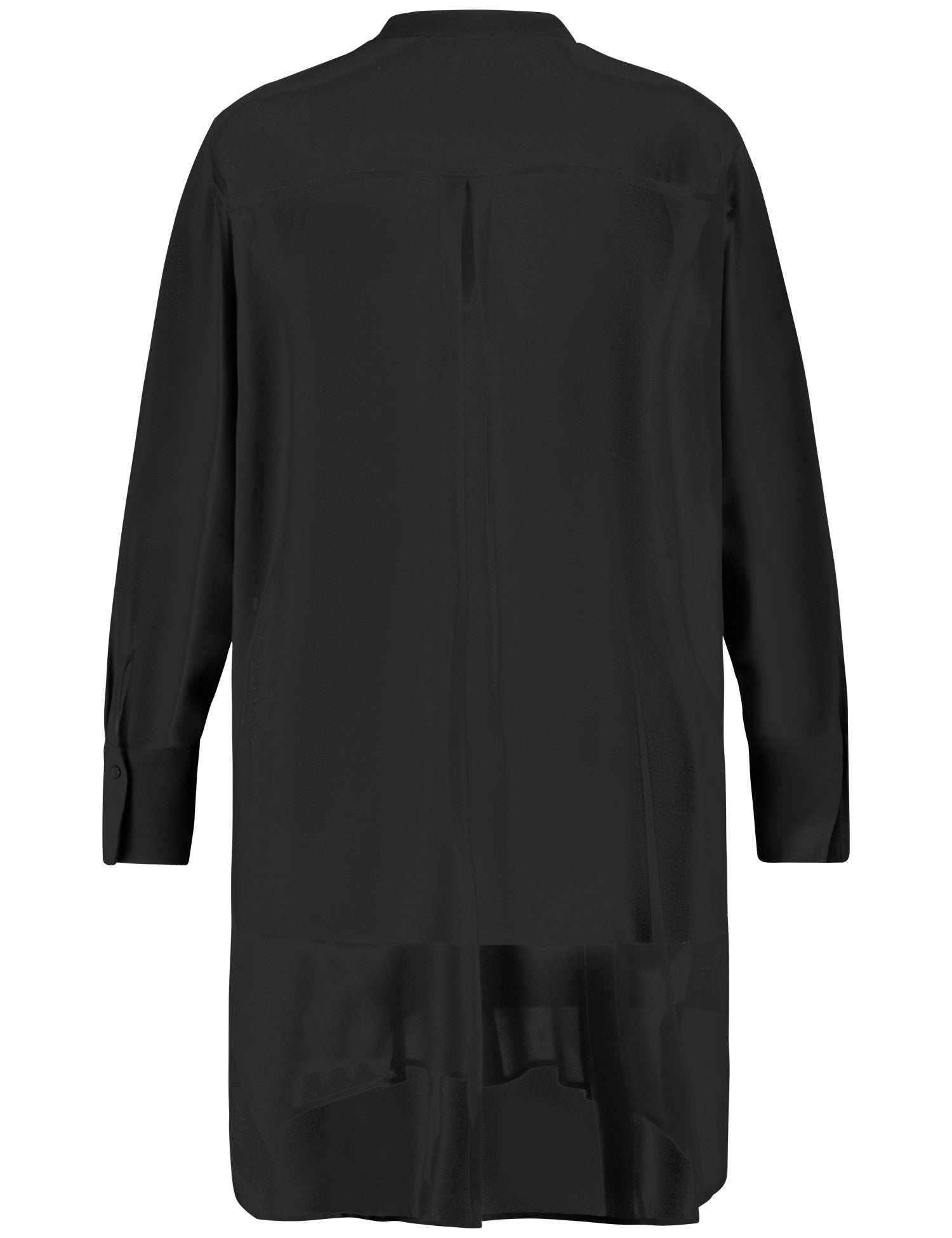 Lange Seitenschlitze. Kellerfalte im rücken. Bereit, mit einem echten Wow-Teil zu begeistern? Diese Bluse ist ein echtes Meisterwerk, das durch das aufwendig gearbeitete Biesenplastron eine besondere Eleganz erhält. Der zarte Crêpe verleiht dir eine unwiderstehliche Leichtigkeit und sorgt für einen Hauch von Raffinesse. Trage sie zu Lederleggings für einen edgy Style oder kombiniere sie mit eleganten Hosen für einen klassischen Look.