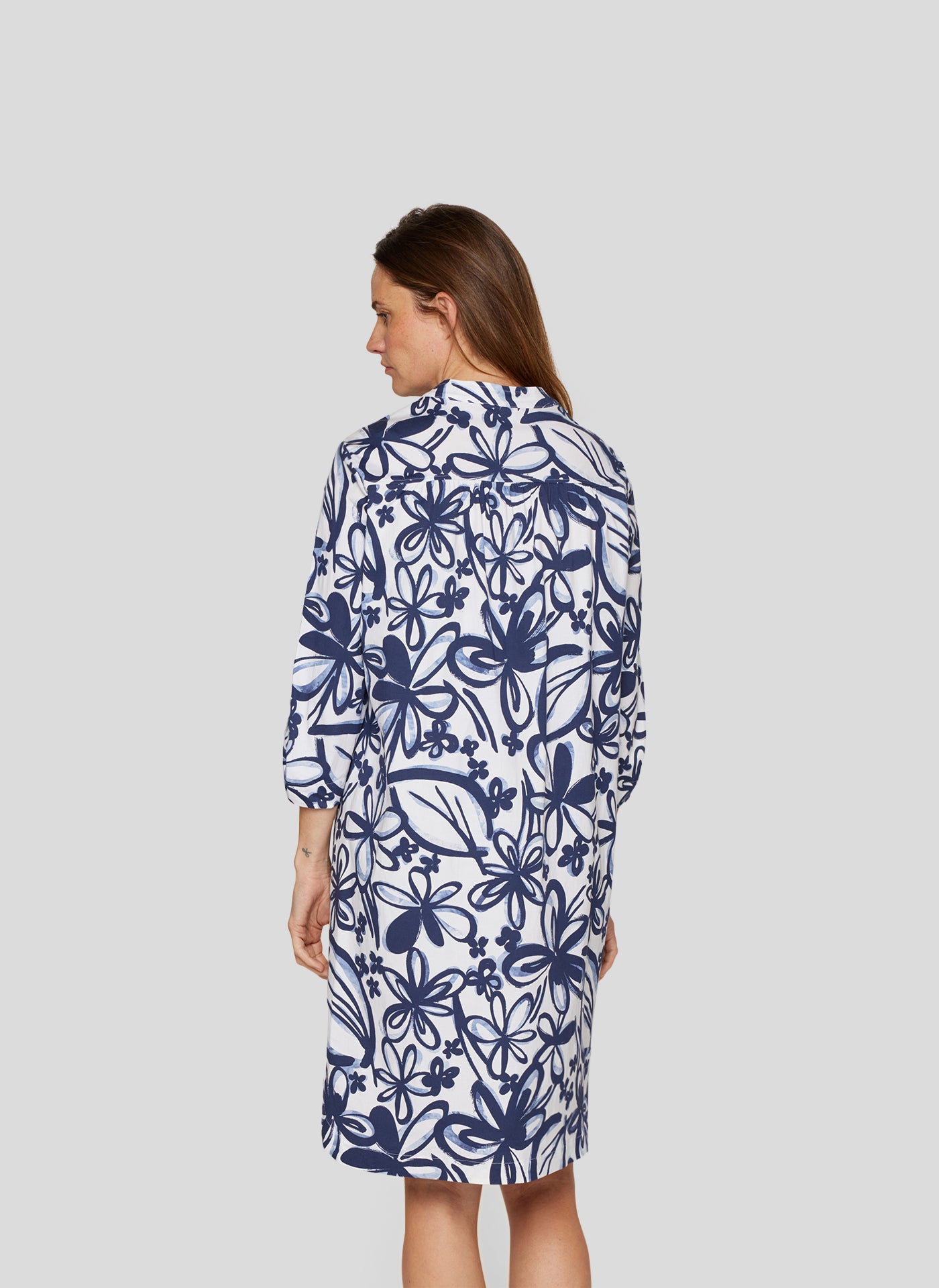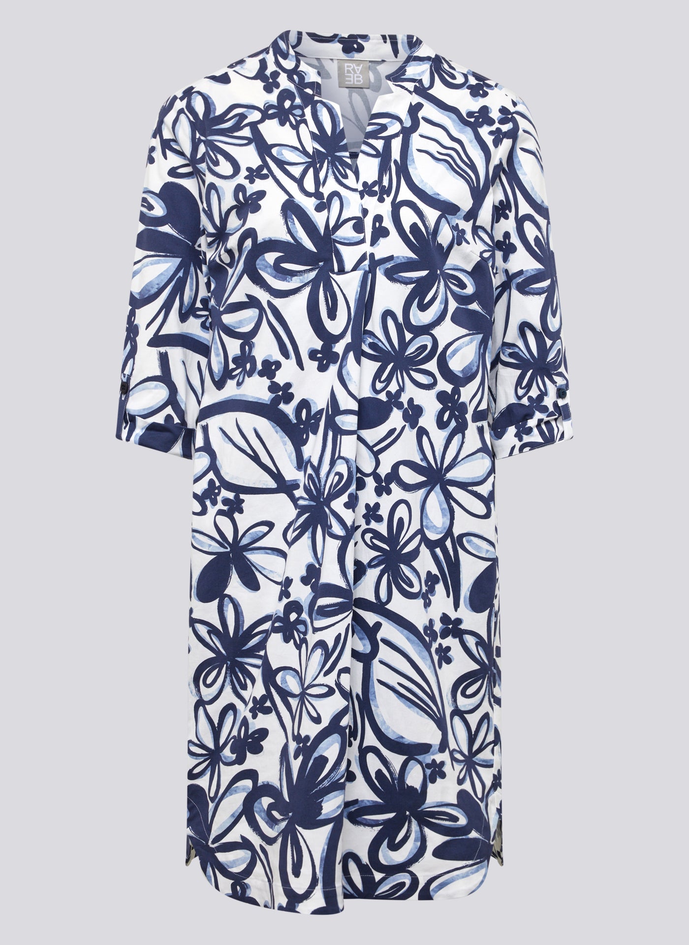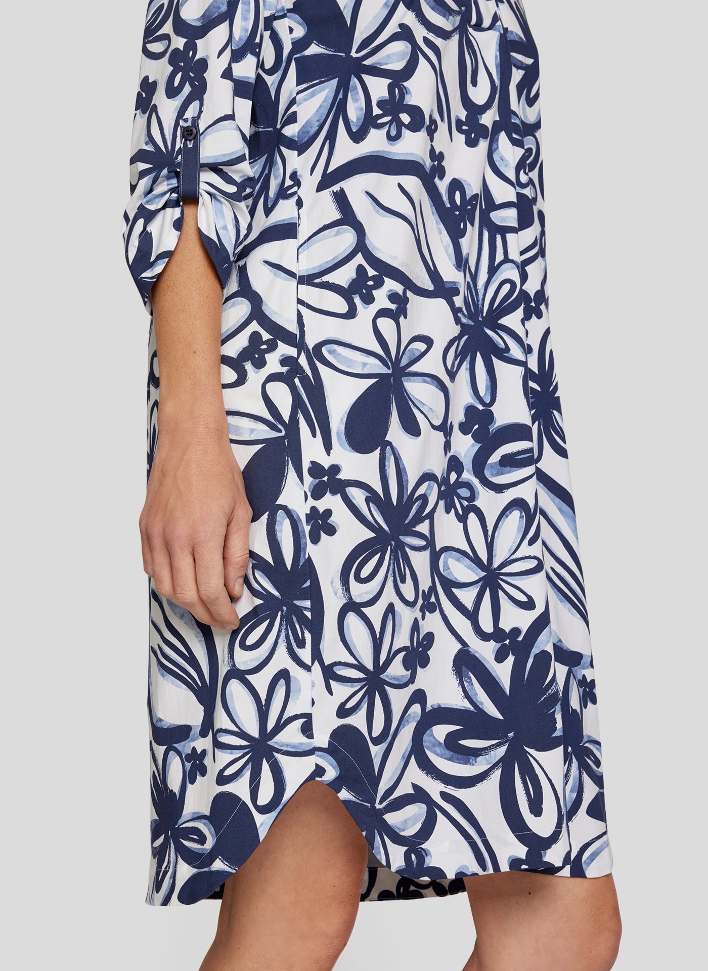 Dieses Blusenkleid begeistert mit einem ausdrucksstarken floralen Allover-Print und einem lässigen, luftigen Schnitt. Der feminine V-Ausschnitt und die 3/4-Ärmel mit praktischem Riegel zum Hochkrempeln verleihen dem Kleid eine entspannte Ausstrahlung. Ideal für warme Tage, ob im Alltag oder im Urlaub.Leichtes, fließendes Material.V-Ausschnitt für eine feminine Note.3/4-Ärmel mit Krempelfunktion und Knopf.Lebendiger floraler Allover-Print.Bequemer, locker fallender Schnitt.