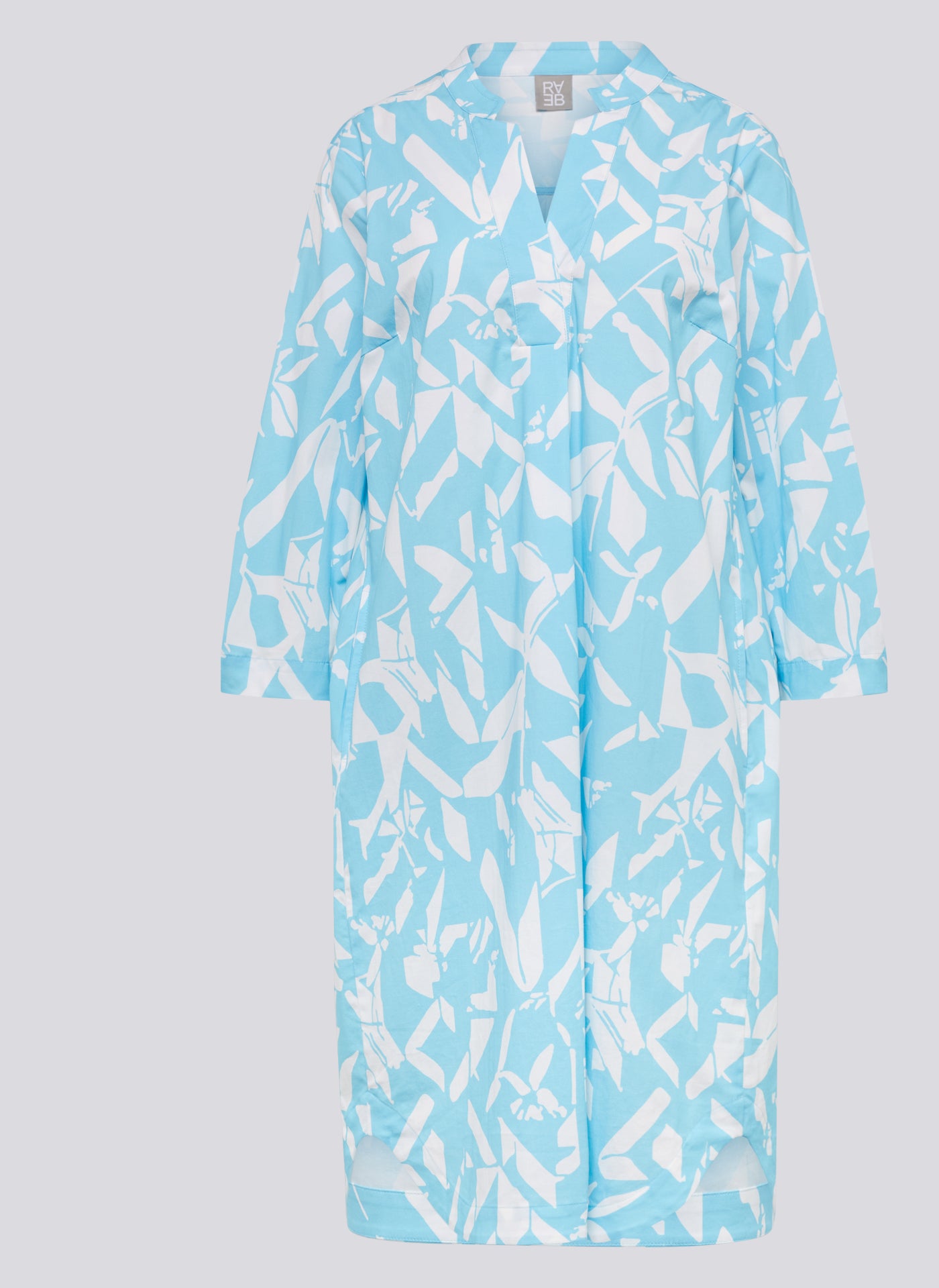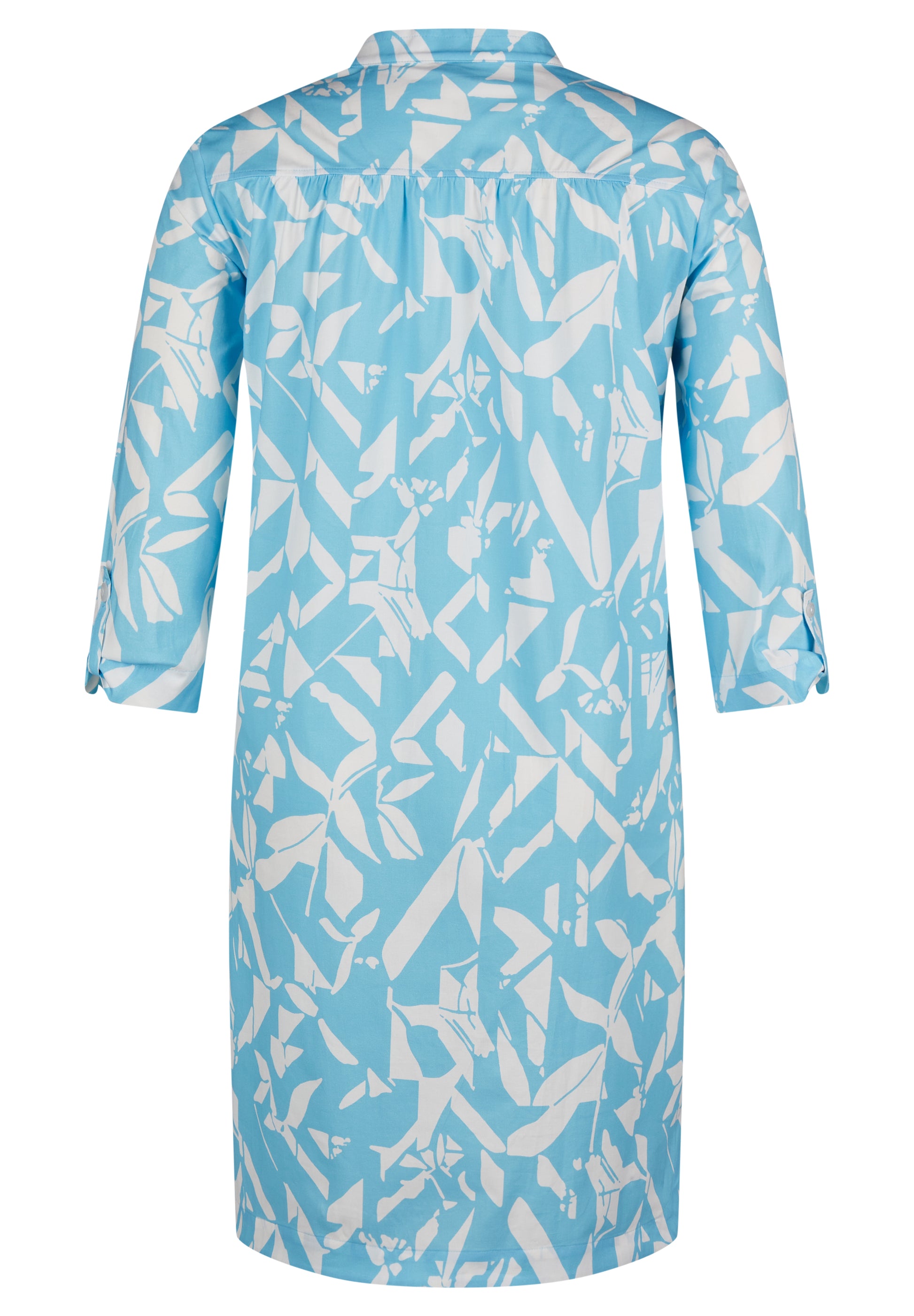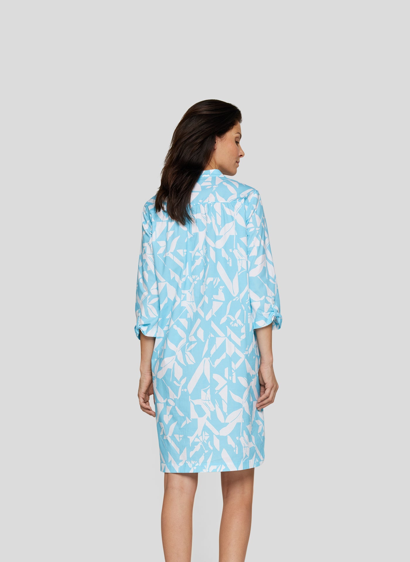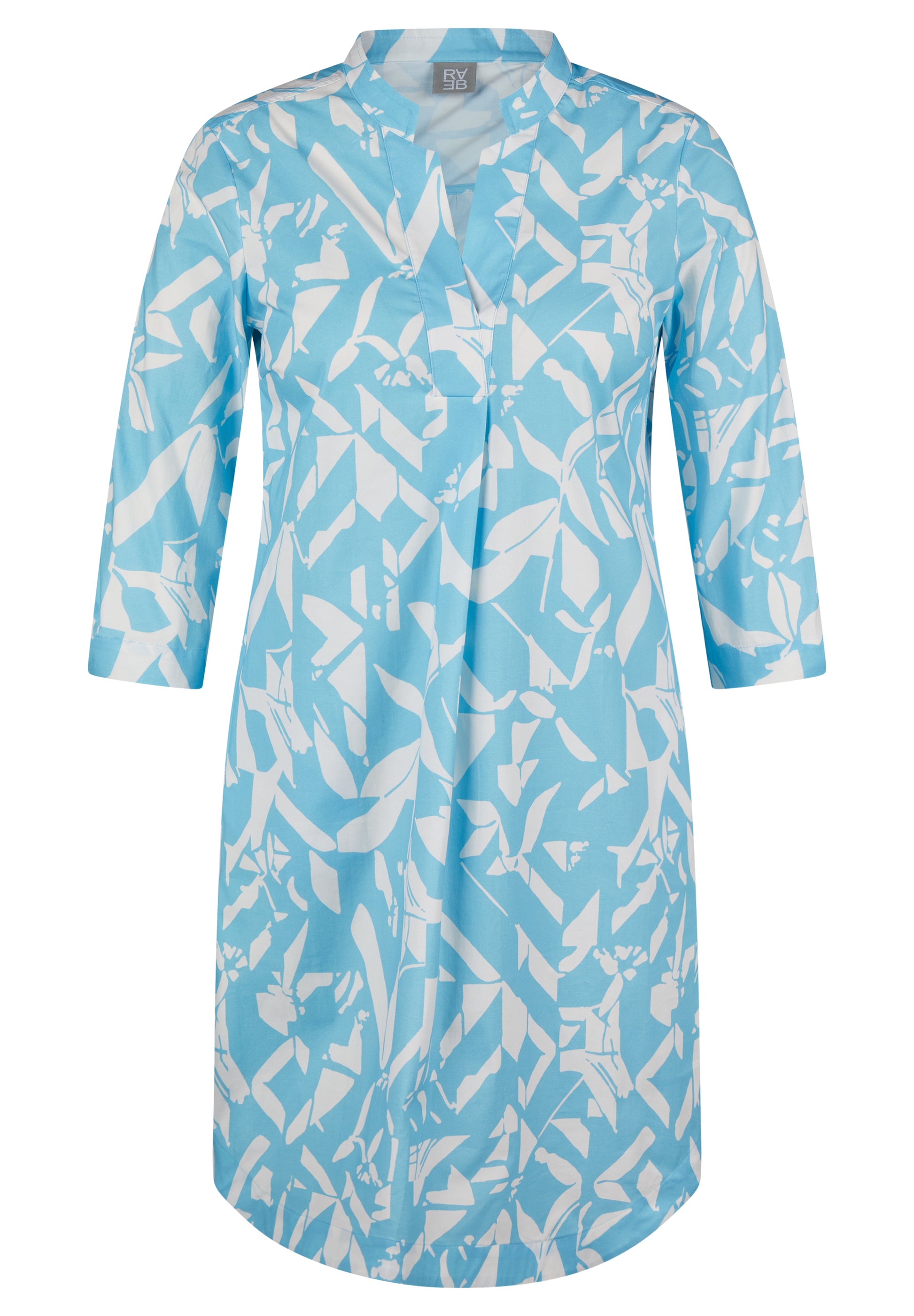 Dieses Blusenkleid begeistert mit einem frischen, grafischen Allover-Print und leichtem Tragekomfort. Der schmeichelhafte V-Ausschnitt und die 3/4-Ärmel sorgen für eine feminine Silhouette, während der lässige Schnitt Bewegungsfreiheit garantiert. Ideal für Urlaub, Freizeit und warme Tage.Fließendes, leichtes Material.Moderner V-Ausschnitt.3/4-Ärmel mit Schlitzdetail.Lockerer, komfortabler Schnitt.Abgerundeter Saum für einen lässigen Look.