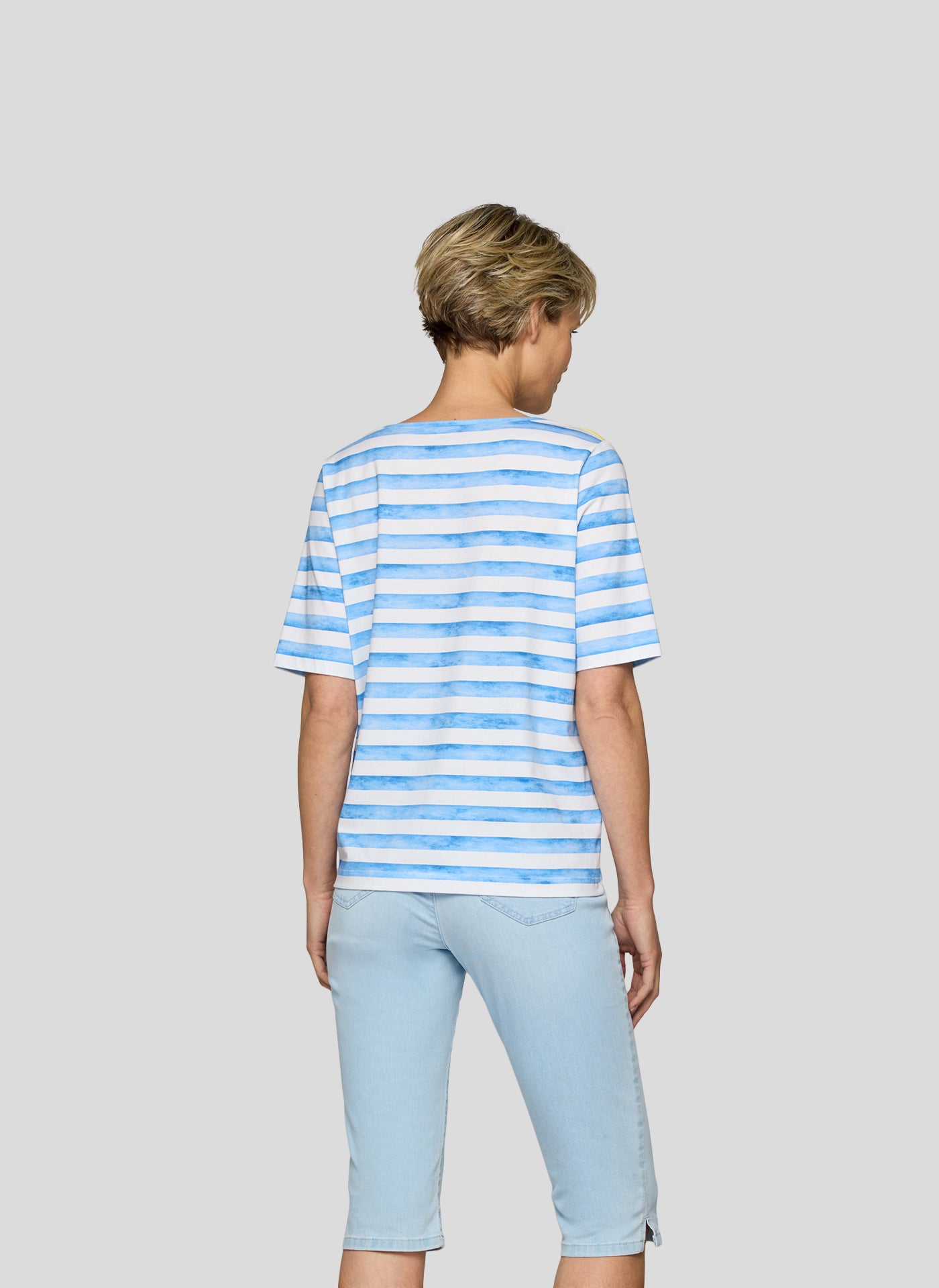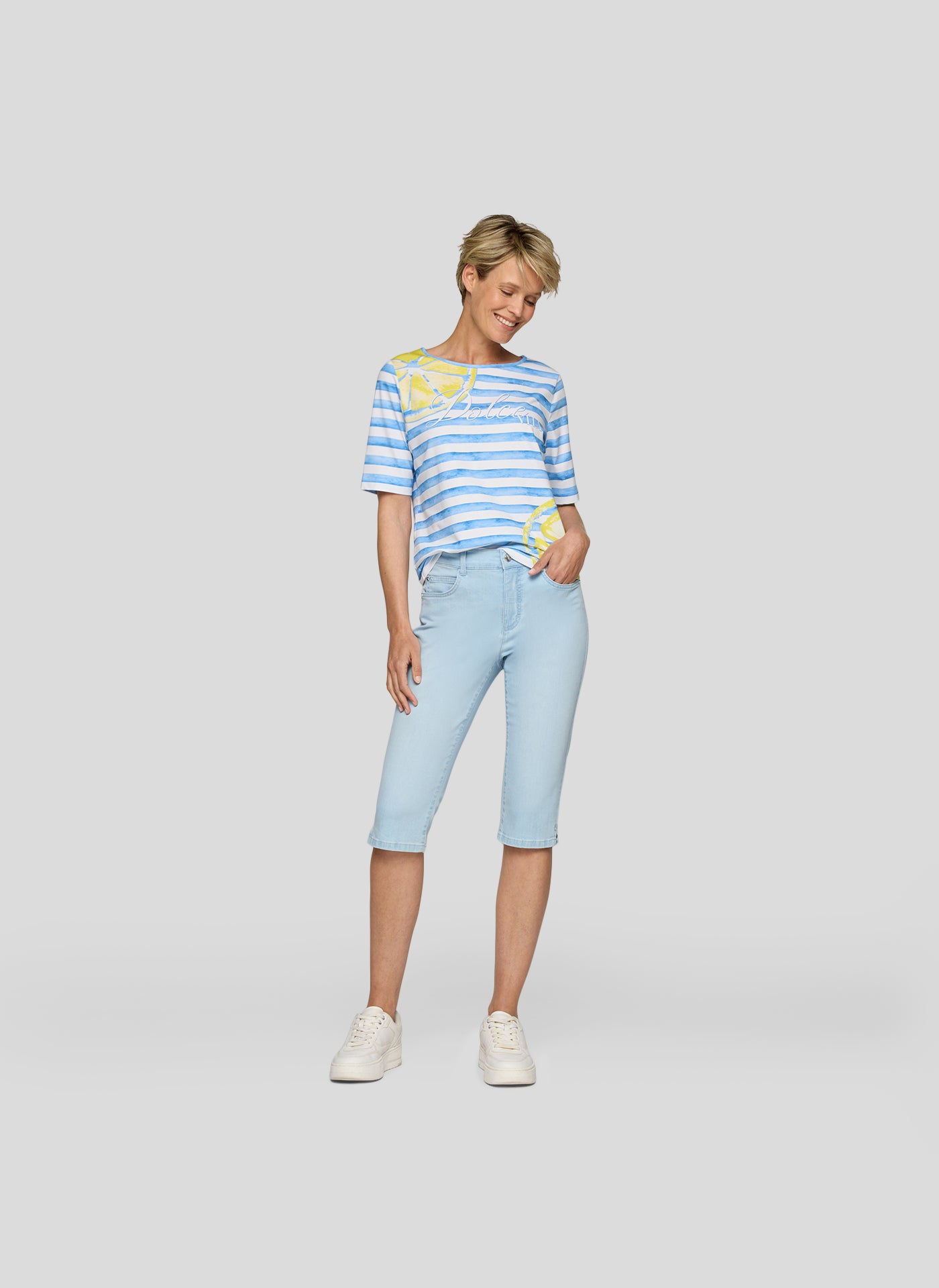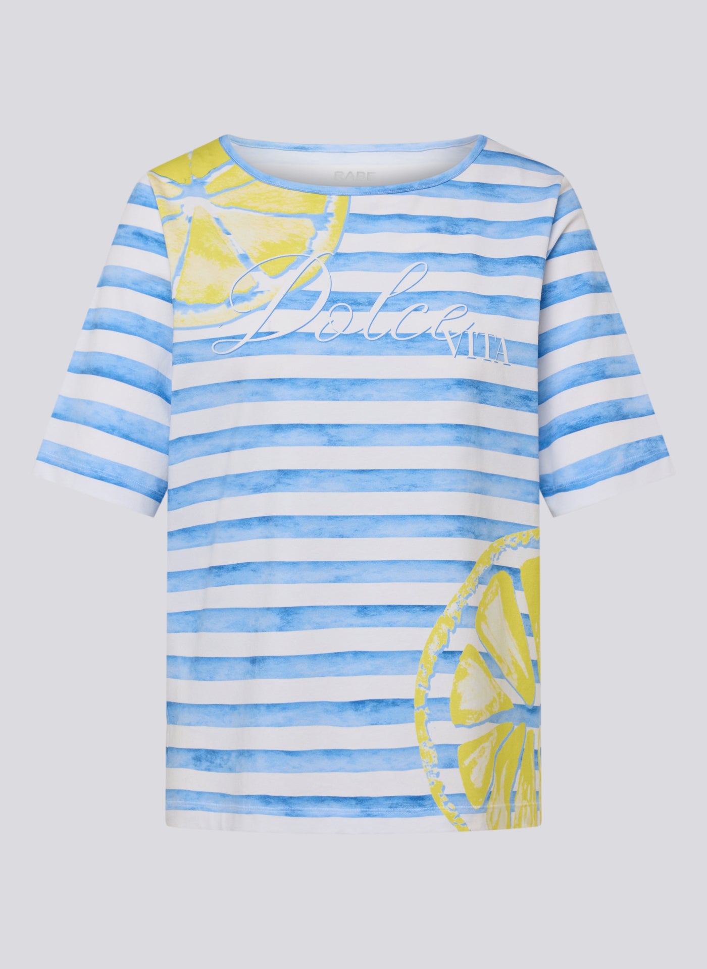 Dieses Shirt bringt italienisches Lebensgefühl in Ihre Garderobe. Der klassische Streifenlook wird durch das fruchtige Zitronenmotiv und den verspielten Schriftzug _Dolce Vita_ aufgelockert _ ideal für sonnige Tage und Urlaubslaune.Zeitloses Streifenmuster in moderner Farbgebung.Plakativer Zitronenprint als sommerliches Highlight.Verschnörkelter _Dolce Vita_-Schriftzug mit femininer Ausstrahlung.Rundhalsausschnitt und halblange Ärmel für angenehmen Komfort.Leicht taillierte Passform _ perfekt für legere Sommerlooks.